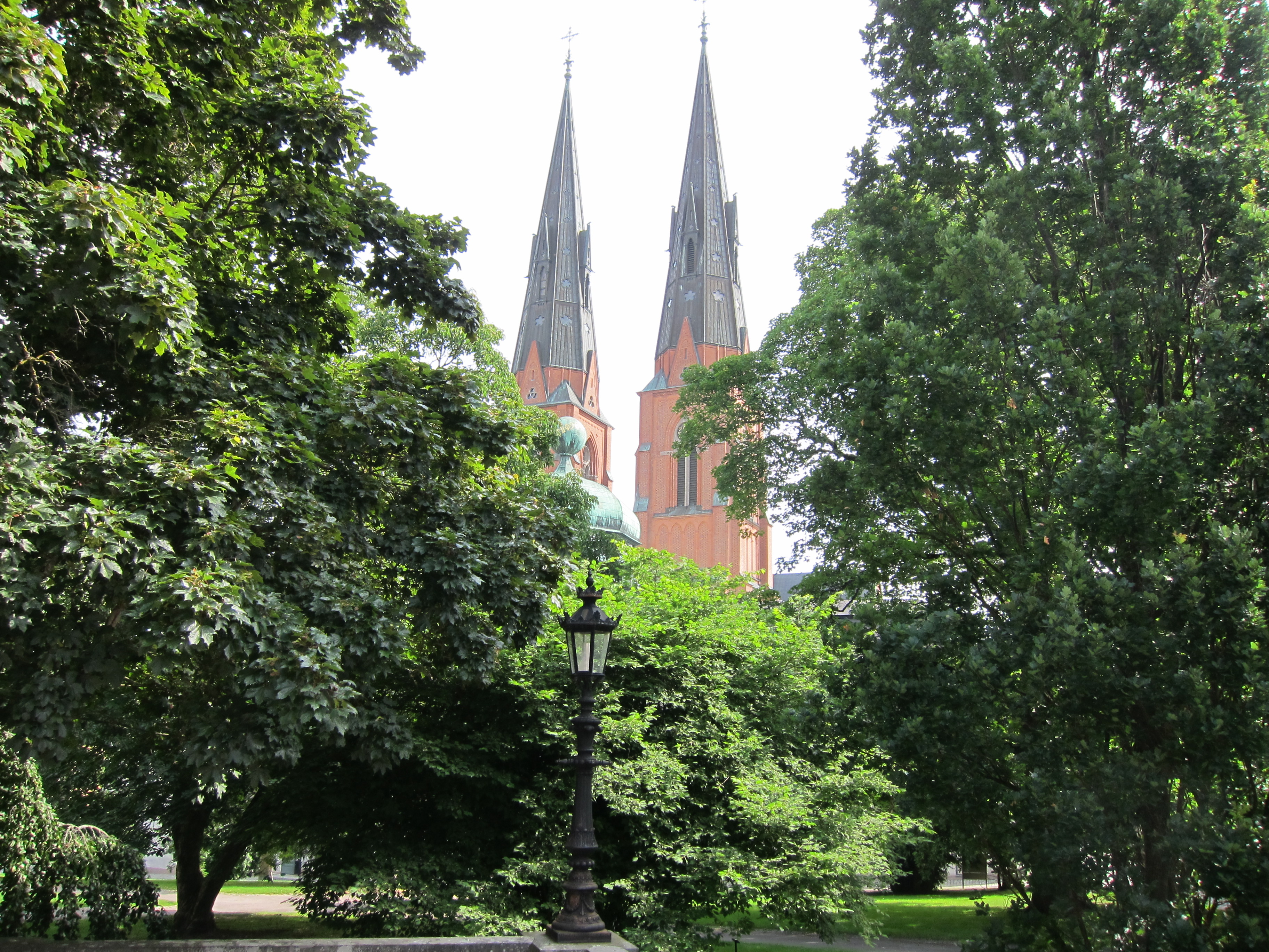 Walking past the church and up a hill, we quickly arrive on campus at Uppsala University and take a moment to look back toward the church to appreciate how lush and green this city is: