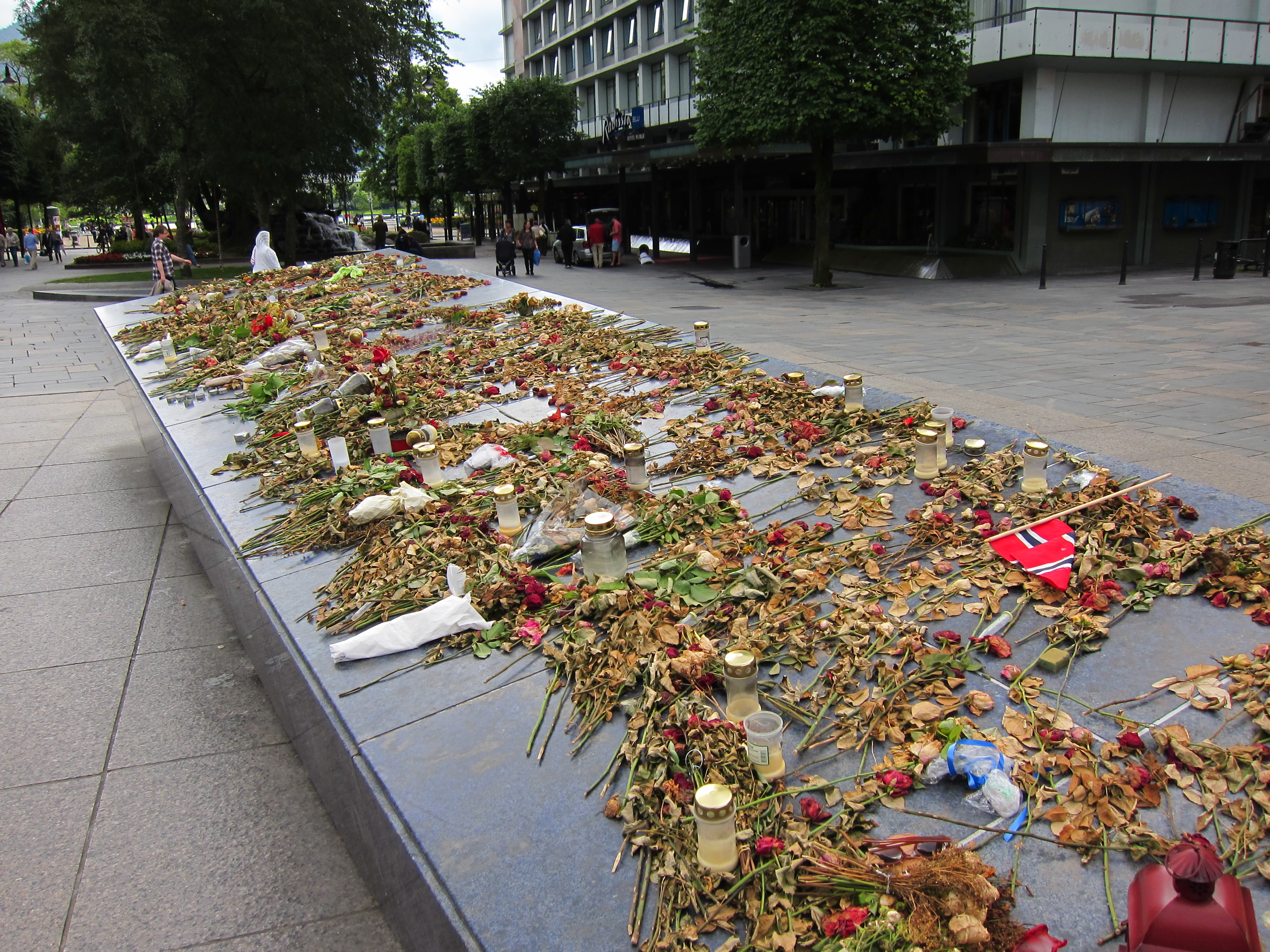 Remembering the terrible 2011 killingsThat’s a wrap on our three days in Norway based out of Bergen.  I’m so glad we decided on the west coast of Norway as the third stop on our Scandinavian tour.  The fjord tour that drove us to this area of this beautiful country was one of the most memorable travel days I’ve ever had.  Here I am at the end of that day with a great vantage point on quaint Bergen: