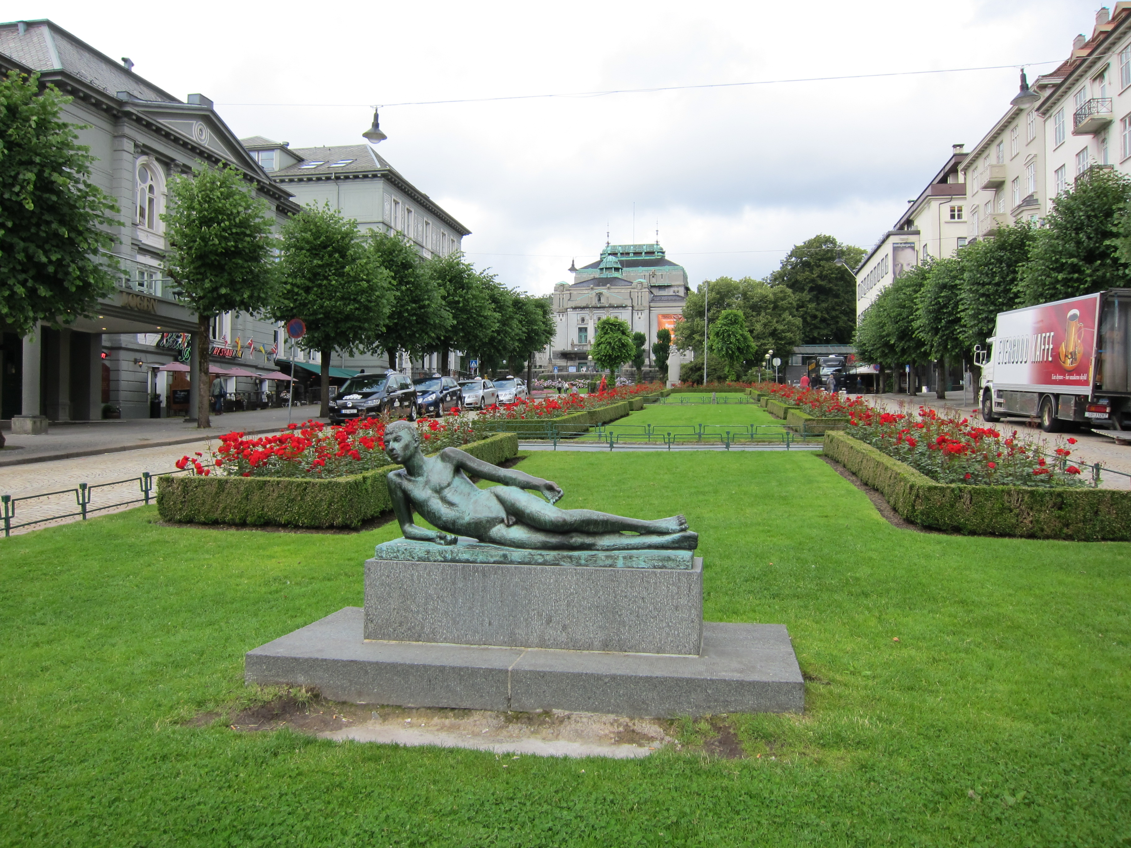 VågenI spent part of a morning just wandering around without a map.  When I travel, I love just getting lost and walking until my feet hurt.   My walking tour of Bergen took me past a few interesting sights.  Here is the Liggende Poet (Lying Poet) sculpture: