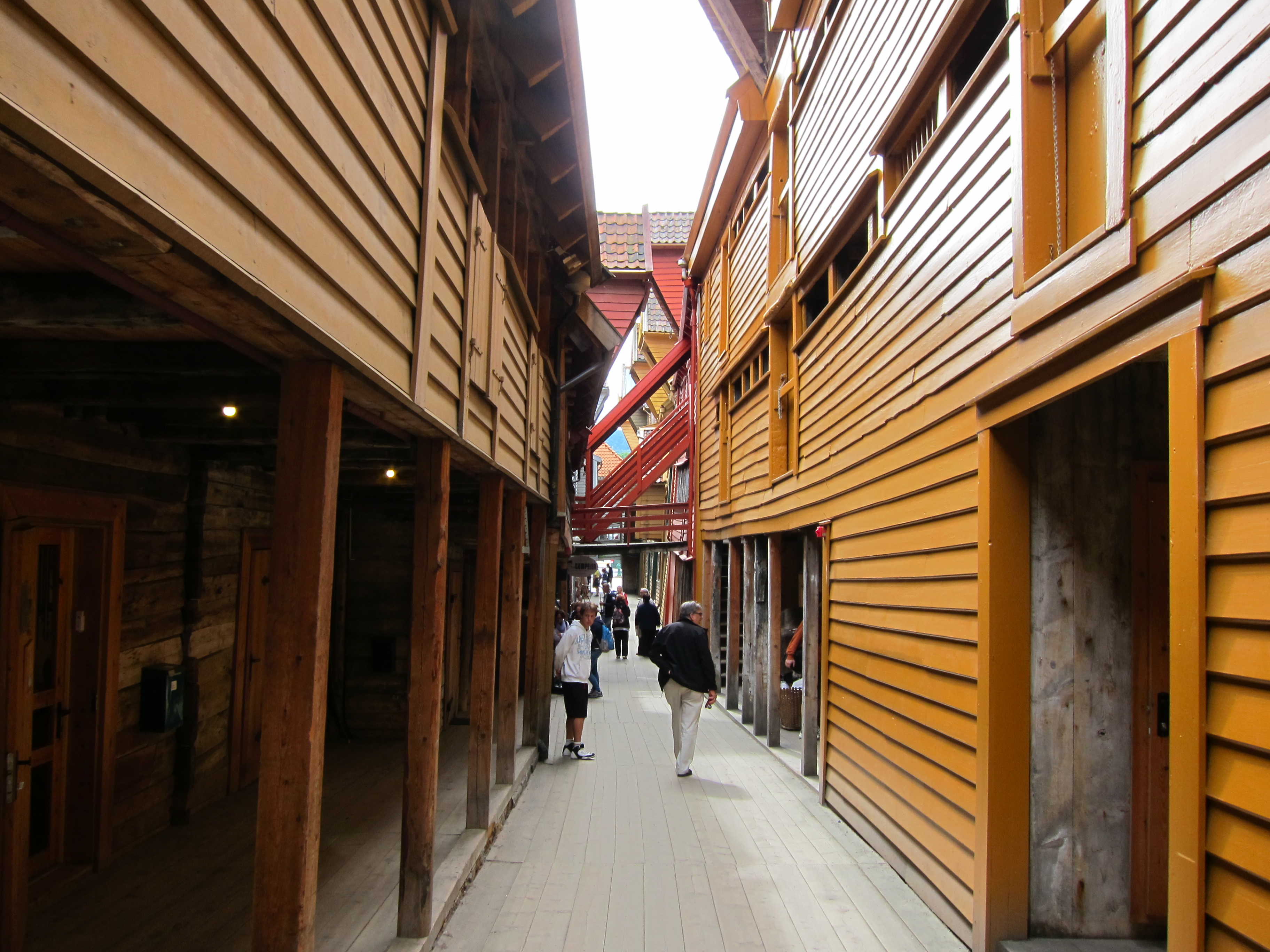Bryggen – A UNESCO world culture heritage site, this area of Bergen is its oldest, dating back to around the mid 1300s.  Due to many fires, there’s a mix of newer and older buildings with some cellars here dating back to the 15th century.  Even the reconstructed buildings are faithful to the originals.   They are beautiful buildings whose angles (few of which are perfect 90 degrees as you can see) add to the charm: