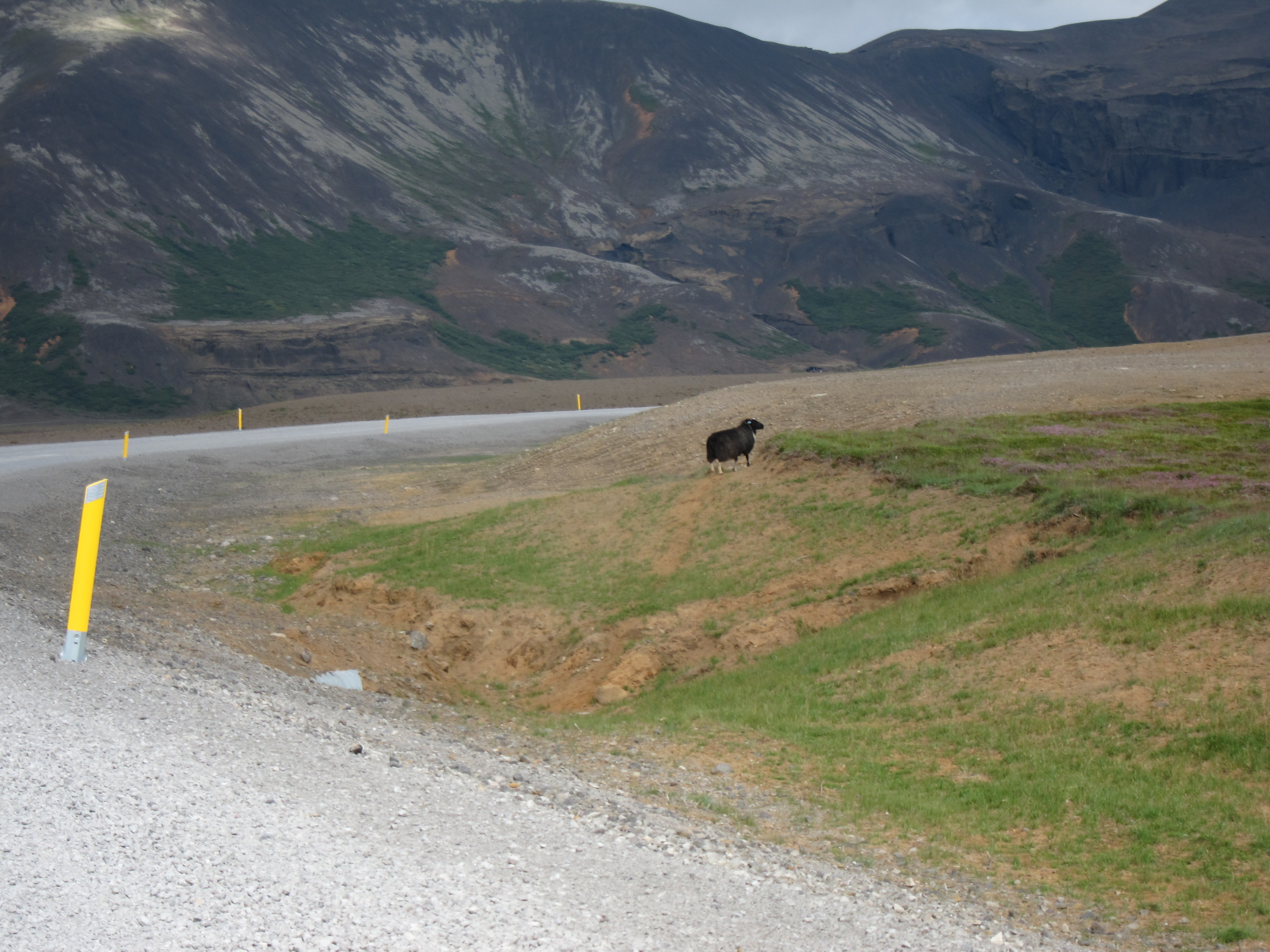 Back in the car, the skies really start to clear and we’re into a bright, beautiful day.  I think we made a wrong turn coming out of Þingvellir, and take a bit of an unexpected route on to Geysir.  The drive there is stunning and along the way we get a number of up close experiences with Icelandic wildlife.  First, some Icelandic horses: