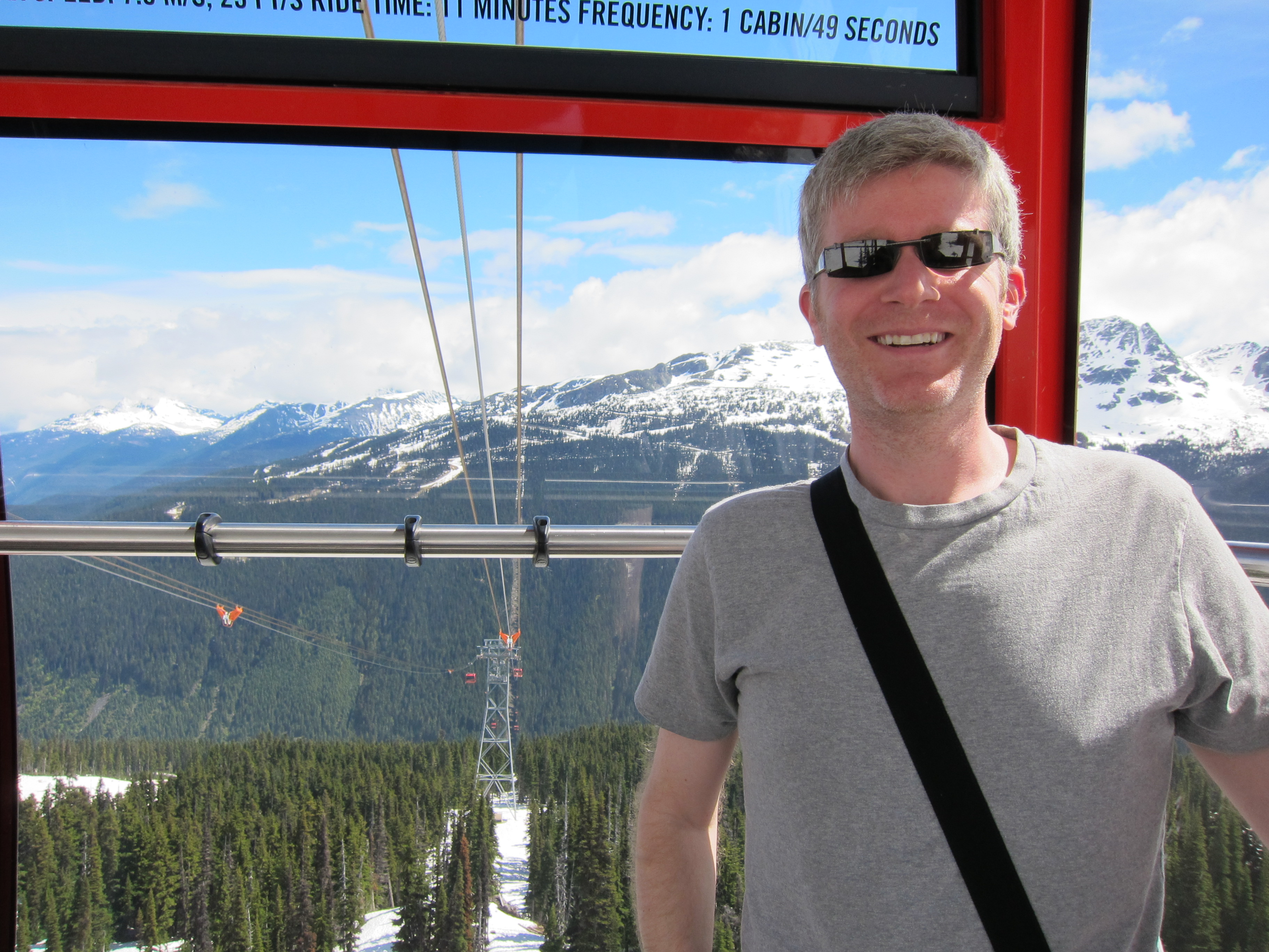 Next up was the Peak to Peak gondola to head over to Blackcomb mountain. It allows you to cover the 4.5km span between the mountain peaks in about ten minutes. Here I am in our gondola (notice the other gondolas on the cable behind me to see some of the perspective of distance):