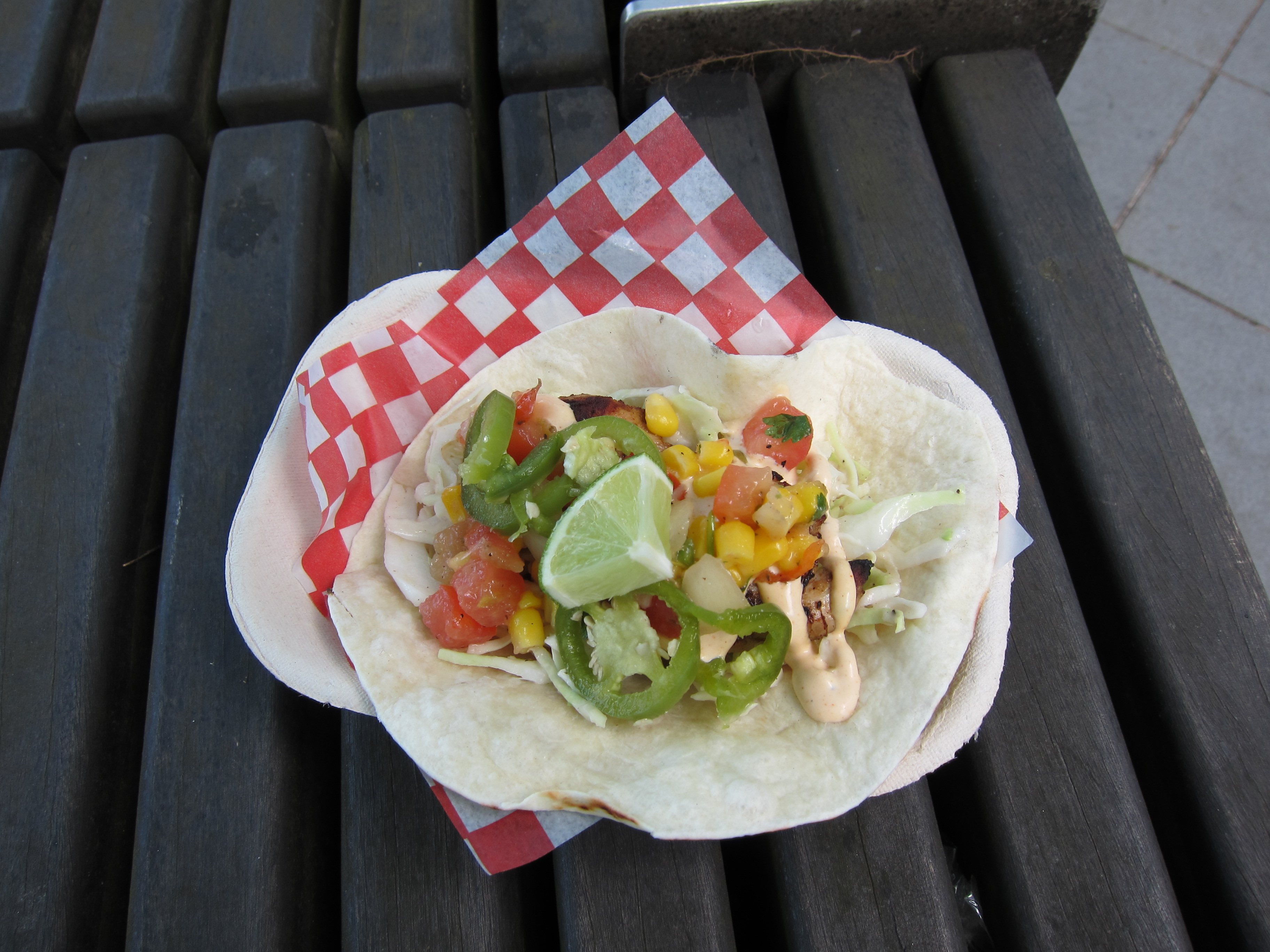A tough decision from their menu, I went with a jerk chicken taco (shredded cabbage, chipotle mayo, pickled jalepenos, corn/tomato relish). This was the first of what would be a few excellent tacos in Vancouver:
