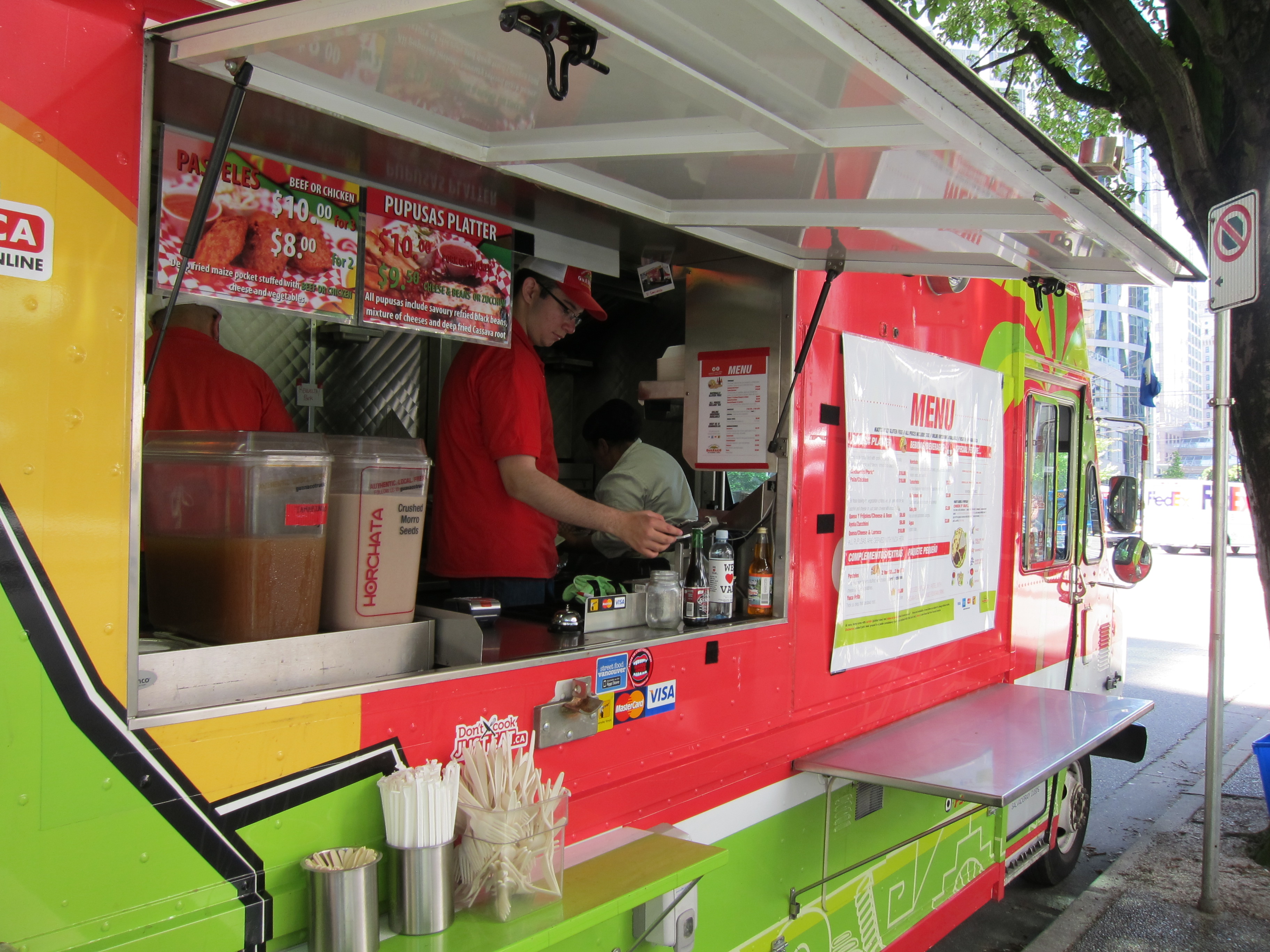 A definite must stop for us was the Guanaco food truck. Why a must stop? First, all of their food is 100% gluten-free. And second, I have only rarely eaten El Salvadorian food and had yet to have a pupusa: