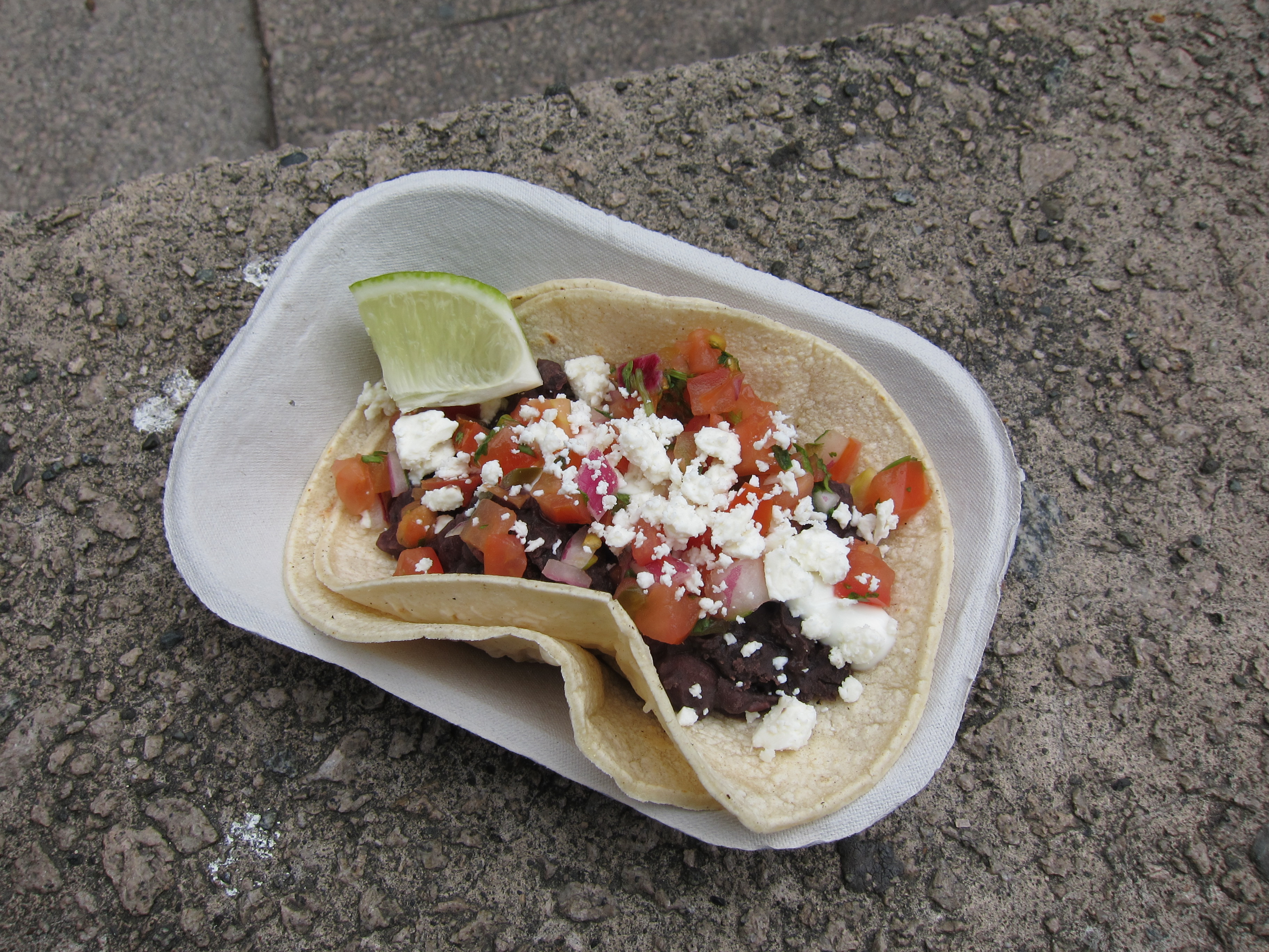 To fuel an afternoon walk around a few neighbourhoods I had yet to visit, I ordered a black bean taco. Fresh, simple and delicious: