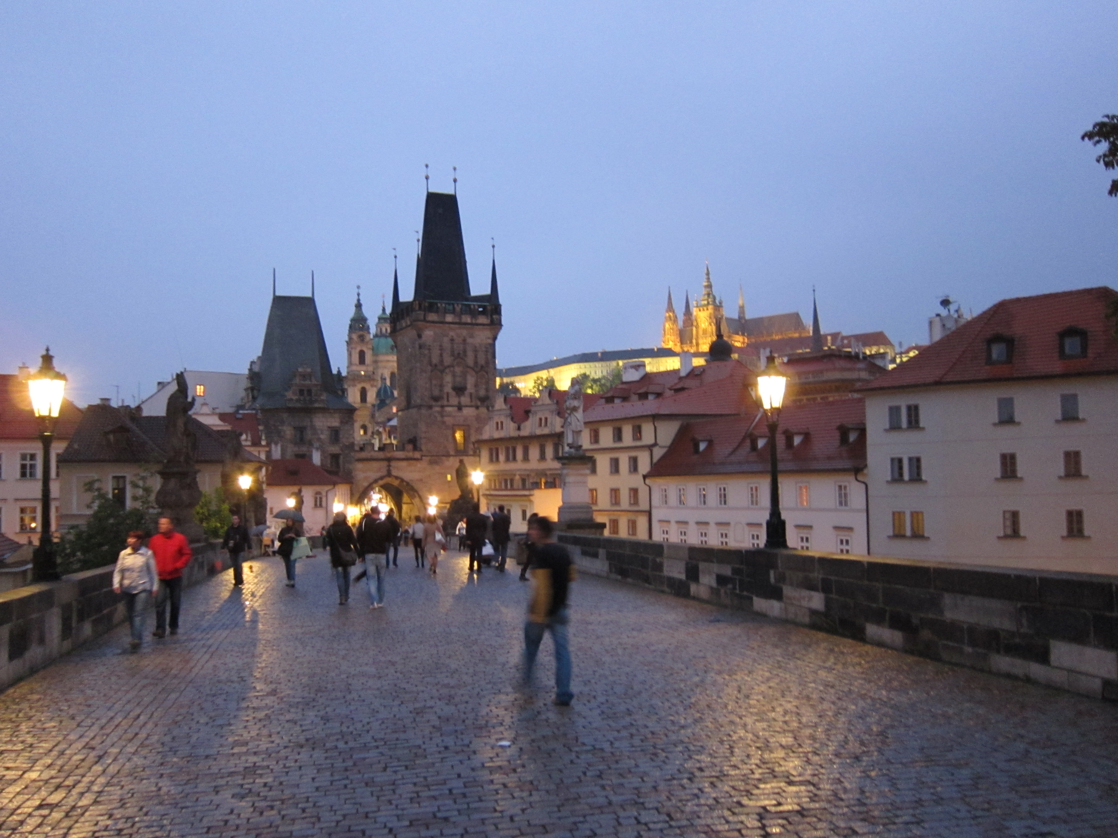 A chilly, damp late August night only added to the mystique of this bridge to me. The views at anytime are stunning, but looking out toward Prague Castle and St. Vitus Cathedral as the lights just start to come on is a special kind of magic: