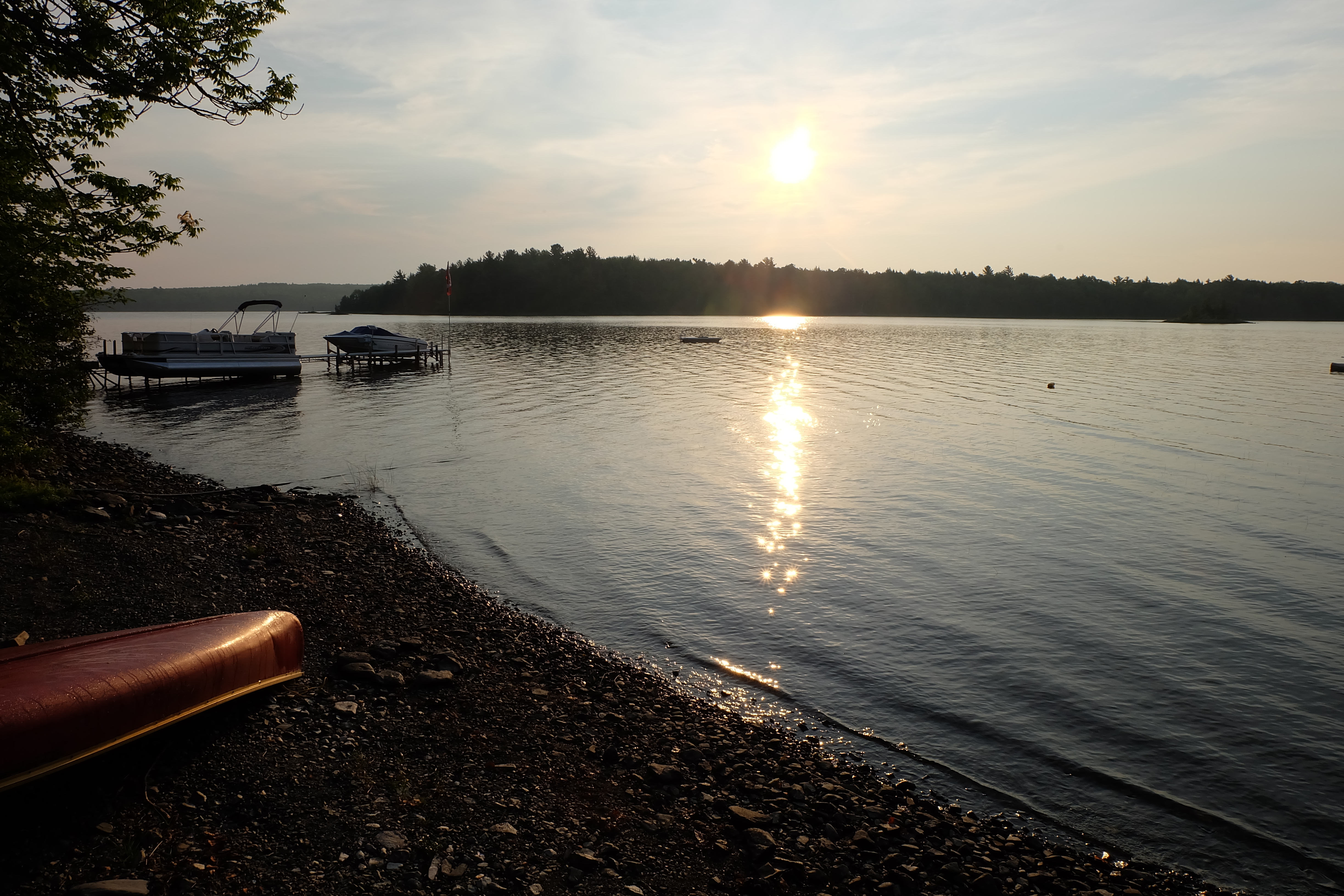 In addition to visiting family, the sheer beauty of this place keeps bringing us back.  It’s a special place for my wife who spent the summers of her childhood here.   Here’s a look out at First Eel River Lake from the shoreline below the cottage.  Pretty stunning eh?