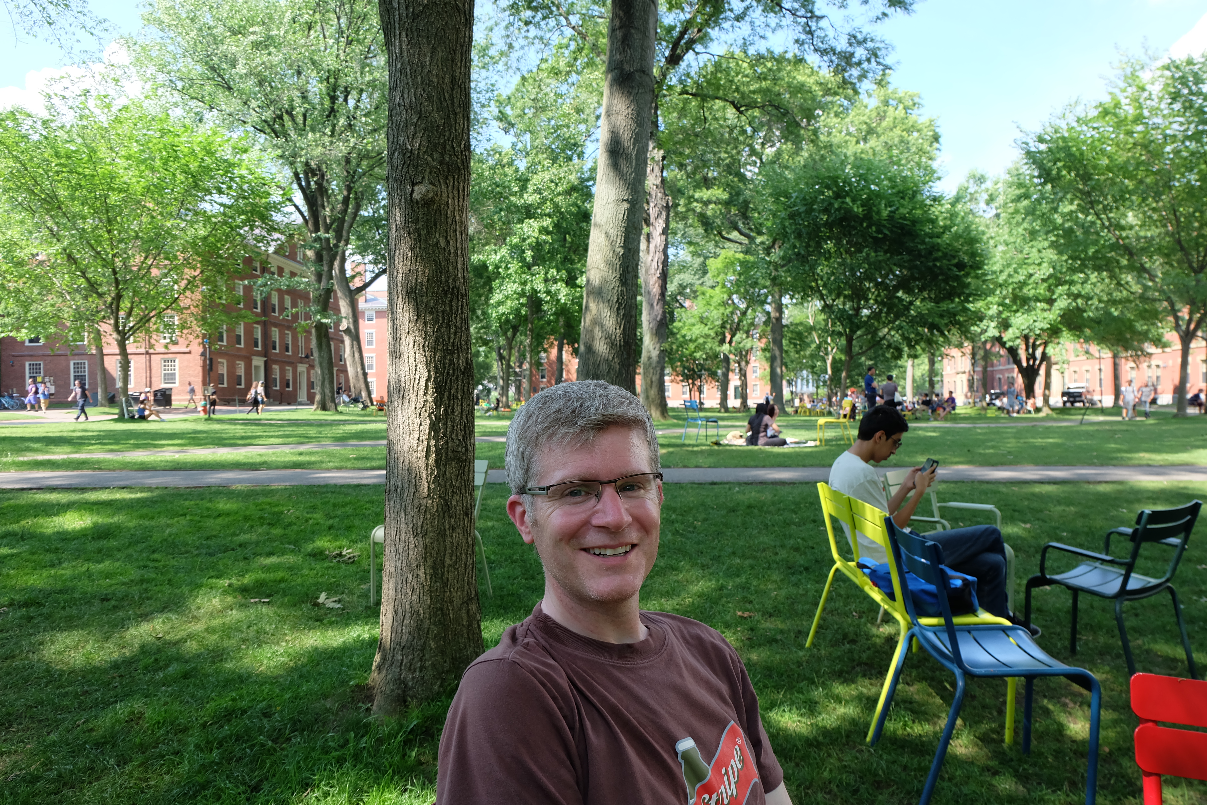 Not surprisingly, Harvard looks like what you think a university should look like. Inside the gates is the Old Yard, a large square enclosed by some of the main university buildings. On this perfect July afternoon, there’s a nice buzz of activity from day campers visiting the school and some grad students socializing and studying. The multi-coloured chairs scattered through the yard invite you take a break here.