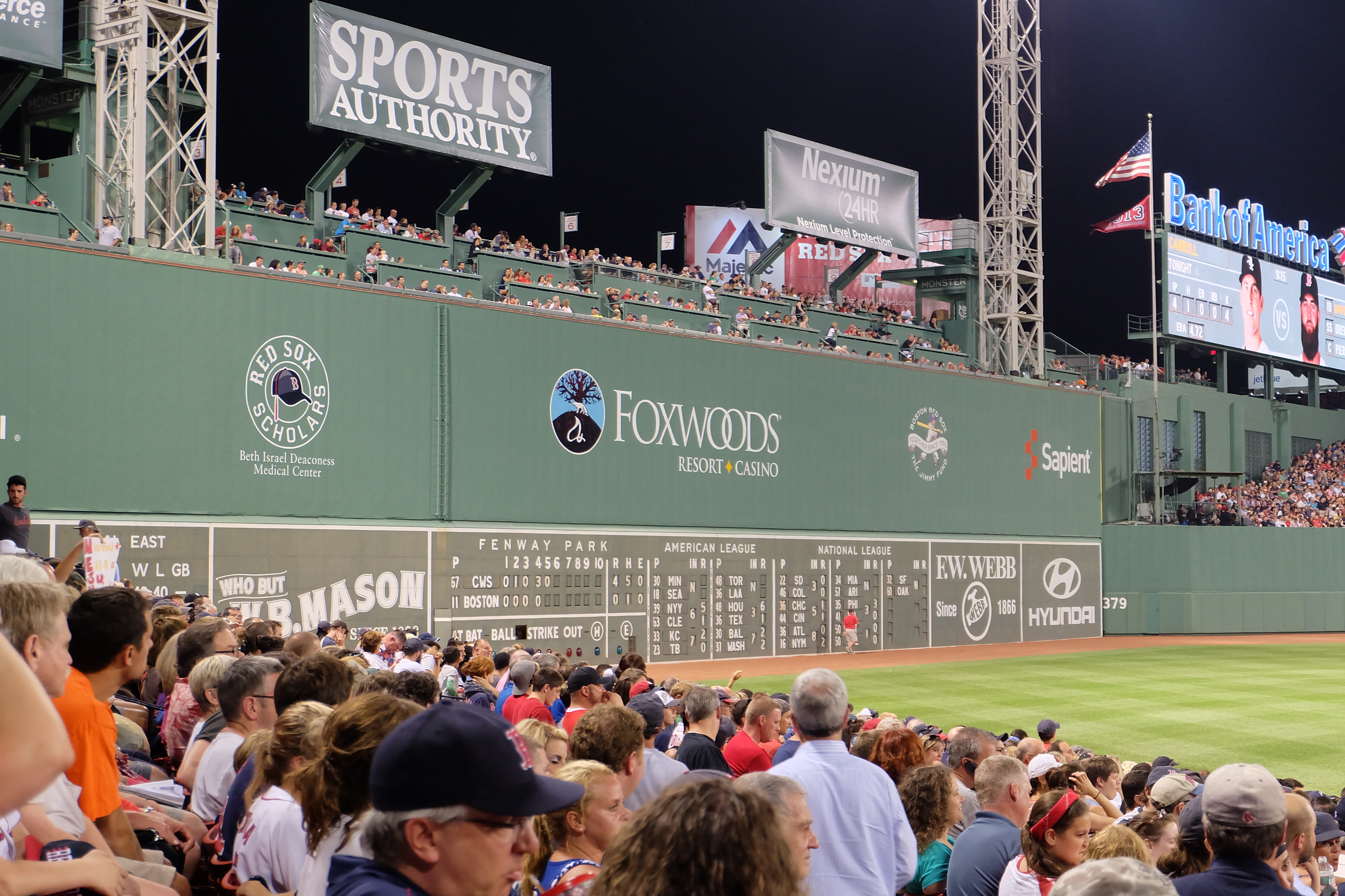A great thing about our seats on the night was the view of the Green Monster just to the left. In between innings I found myself turning to look at the iconic wall. I was hoping to see a ball fly over it at some point, but no luck.