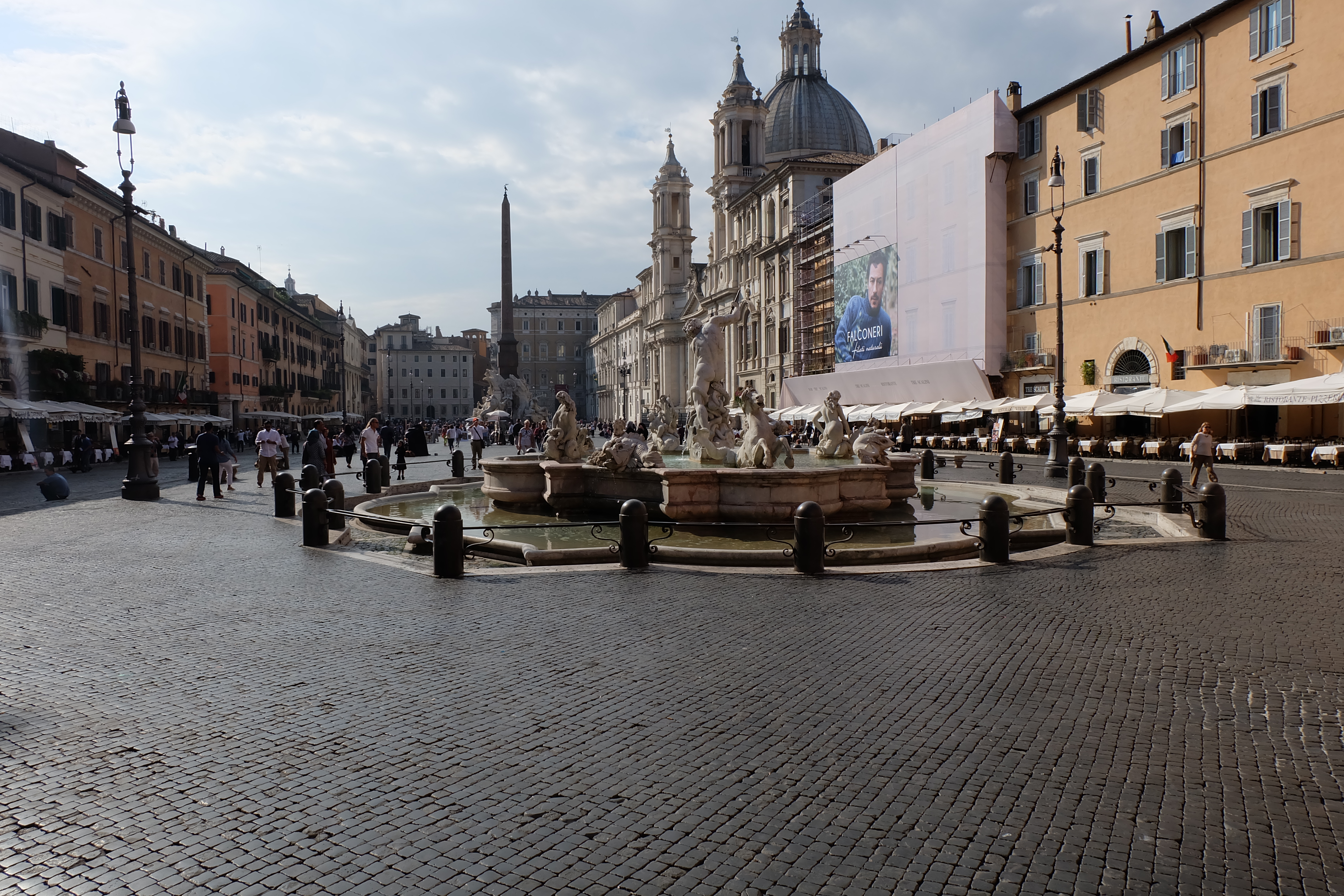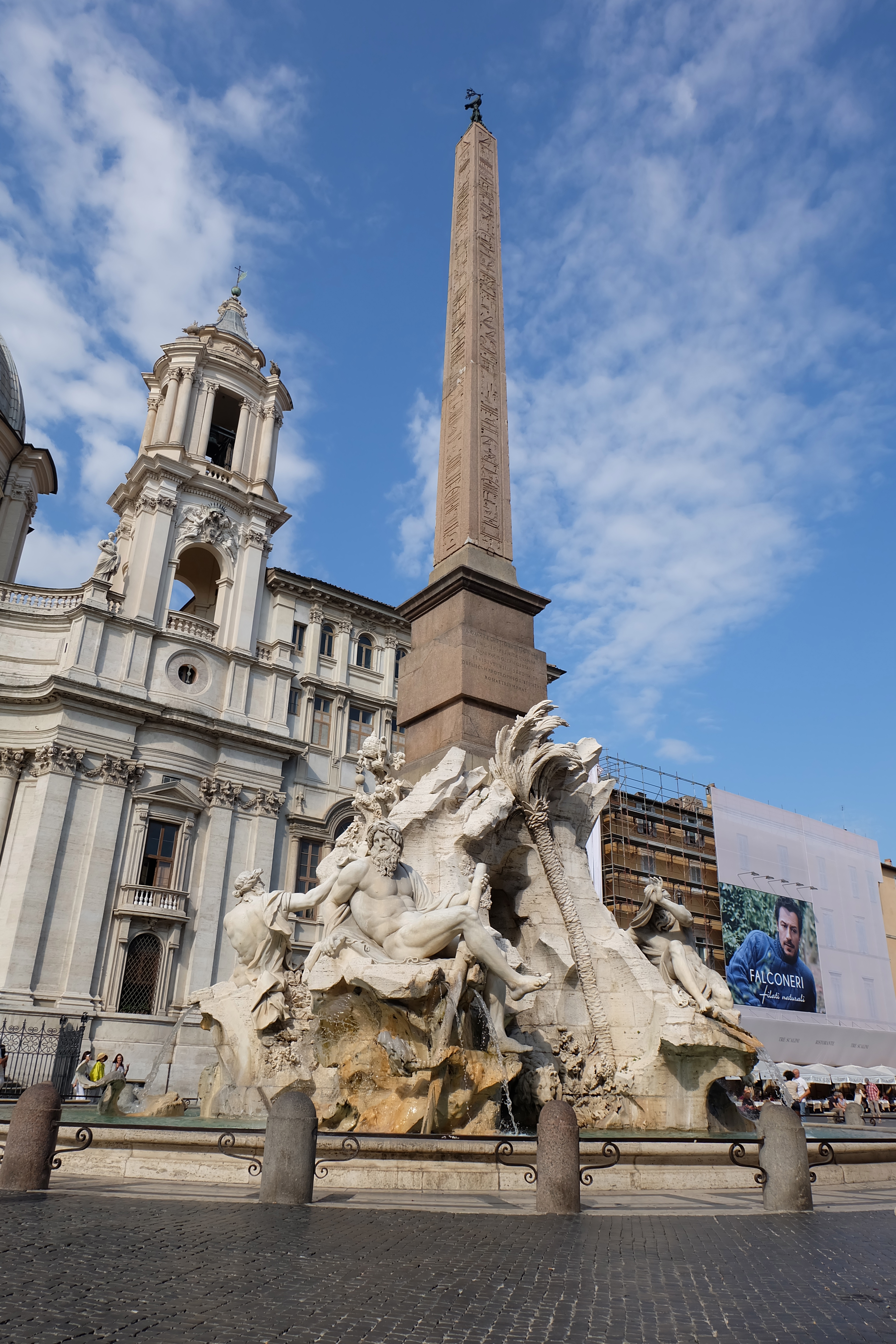 One of the dominant features of the square is the Fontana dei Quattro Fiumi and the striking Egyptian obelisk. The fountain at the base represents the four major rivers on four continents to which Papal authority had spread in the 1600s.