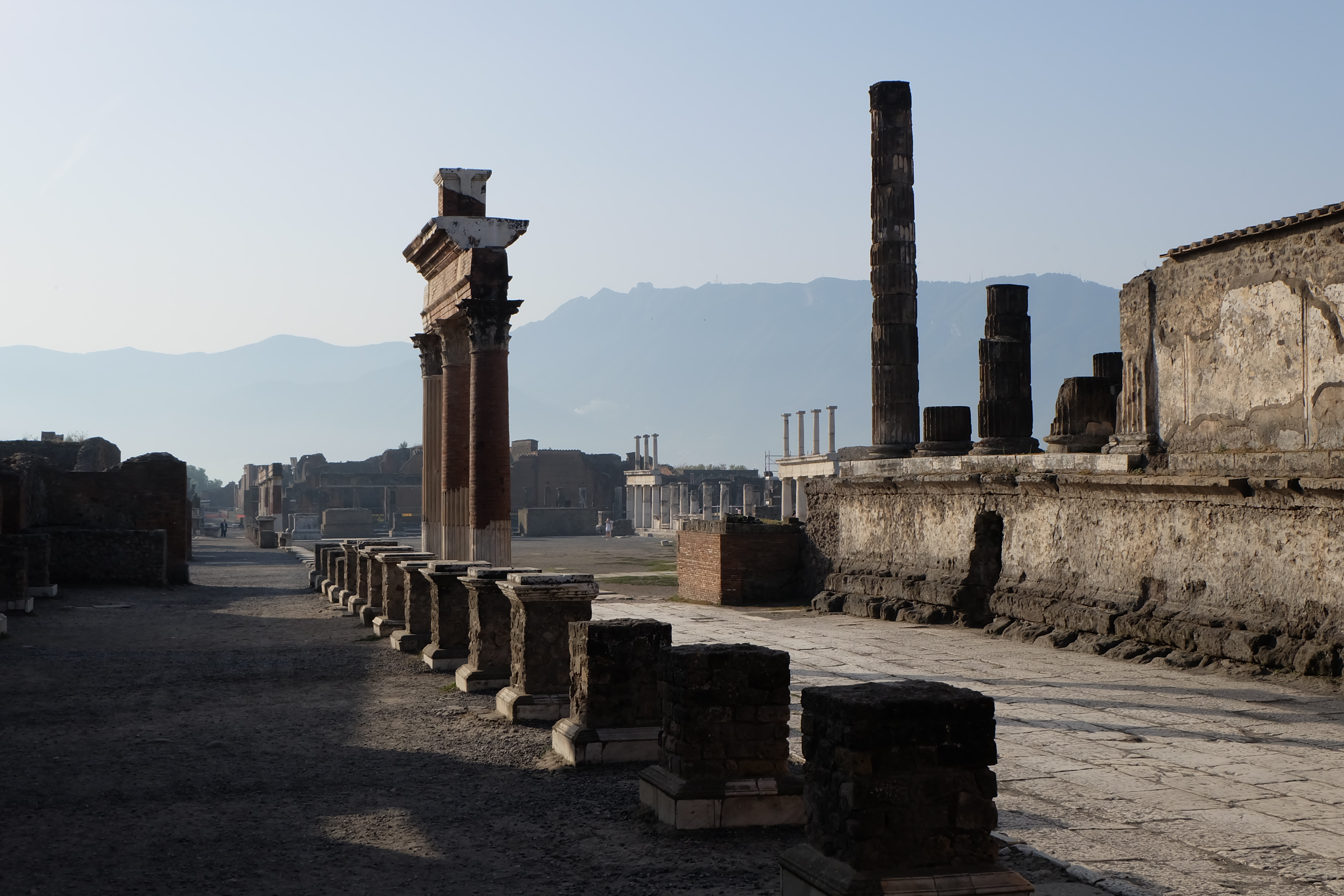 I think we were still pinching ourselves at this point to be here on such a perfect and quiet morning with the ruins just about all to ourselves. From the other end of the forum, this was the view looking back south with the Temple of Jupiter on the right: