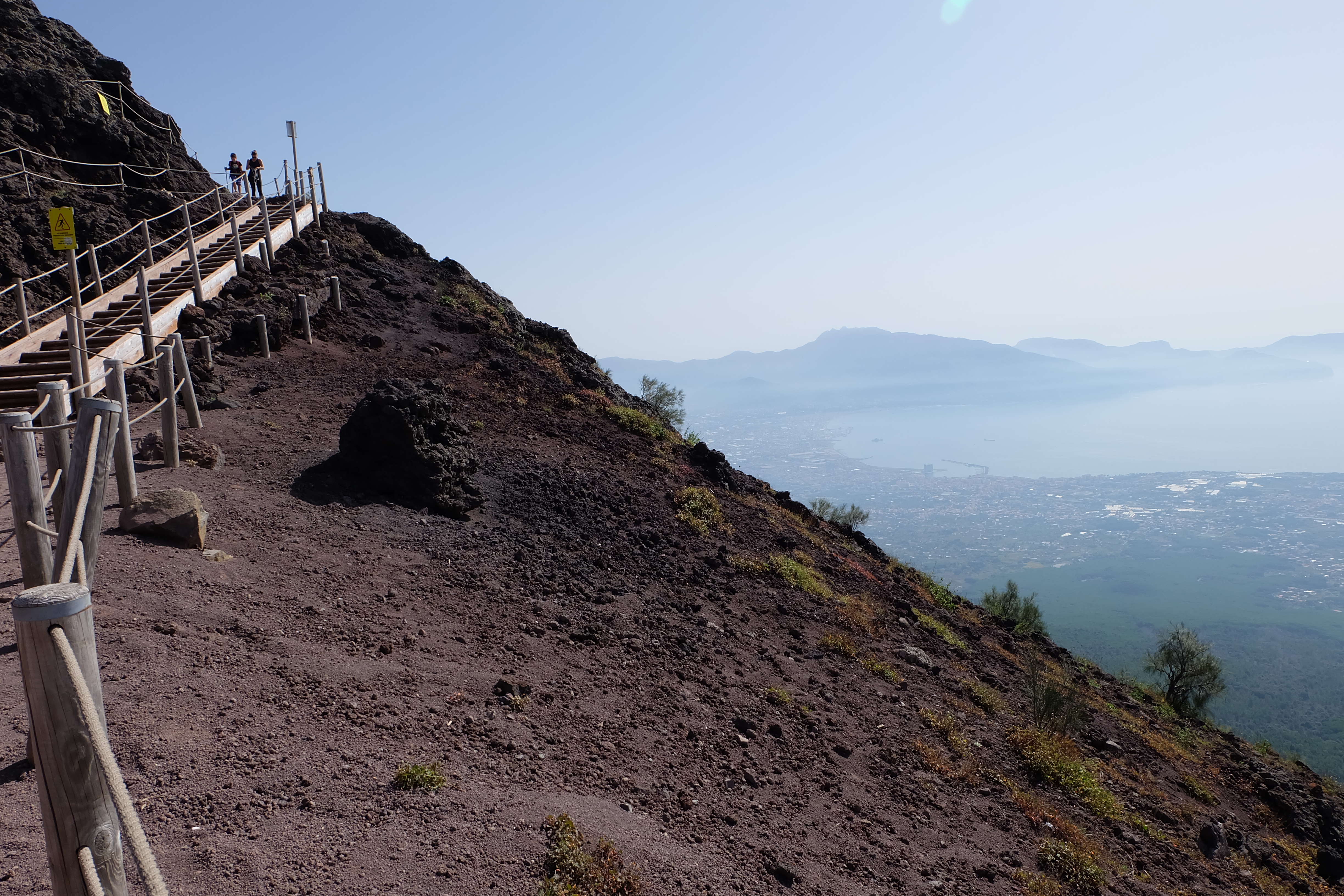 Once freed from our spartan chariot, we started our climb the rest of the way up Mount Vesuvius toward its peak. It is a fairly leisurely walk to the summit, throughout which you’re afforded million dollar views out over the Bay of Naples and the towns that line the water. As we neared the top we stopped for a few minutes to look out over the water toward Sorrento and Capri: