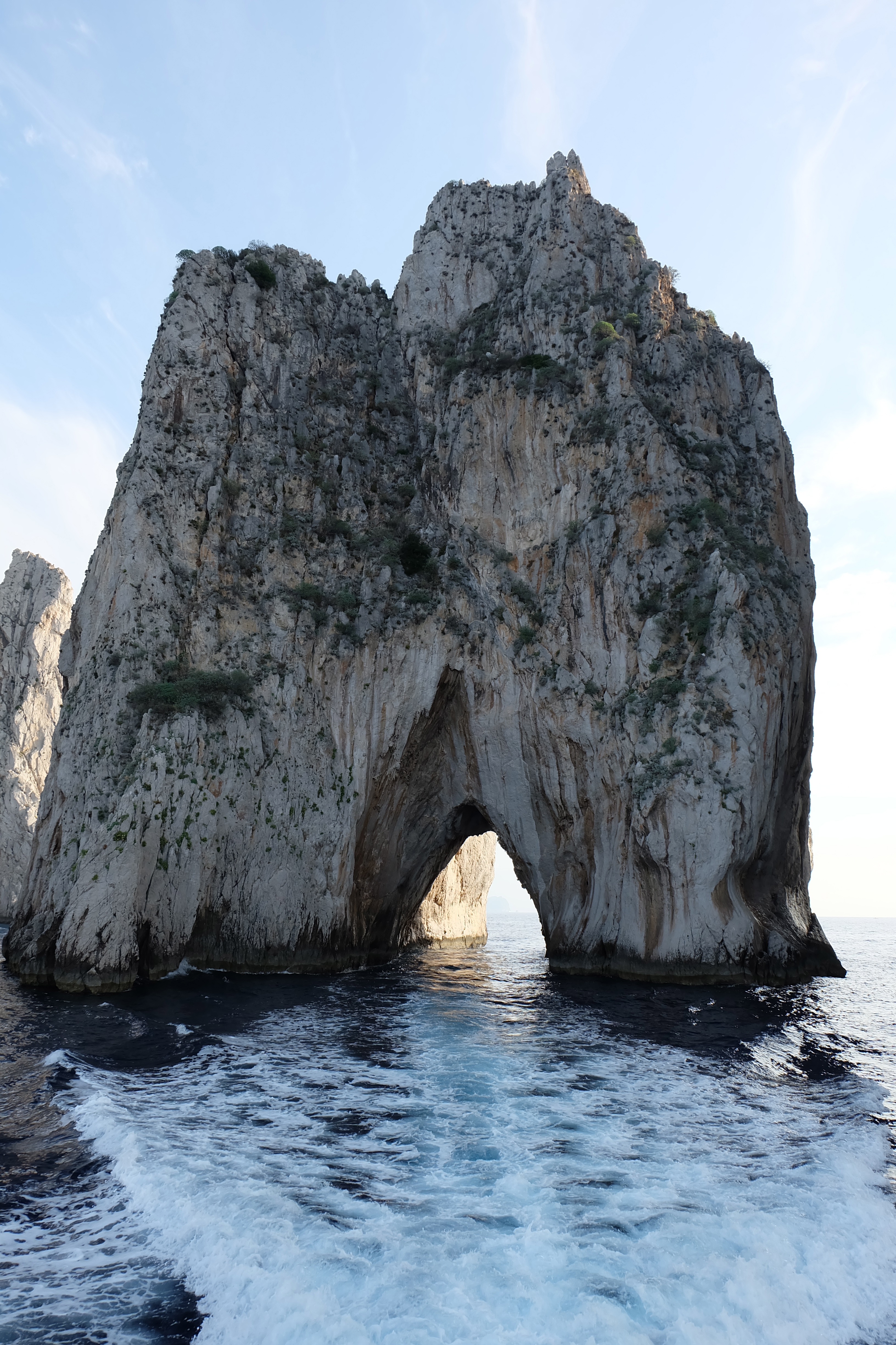 We sailed past (and through!) the Capri faraglioni just off the south east coast.  Those rocks are named (from left to right) Stella, Mezzo and Scopolo.  Stella and Scopolo are a bit more than 300 feet tall: