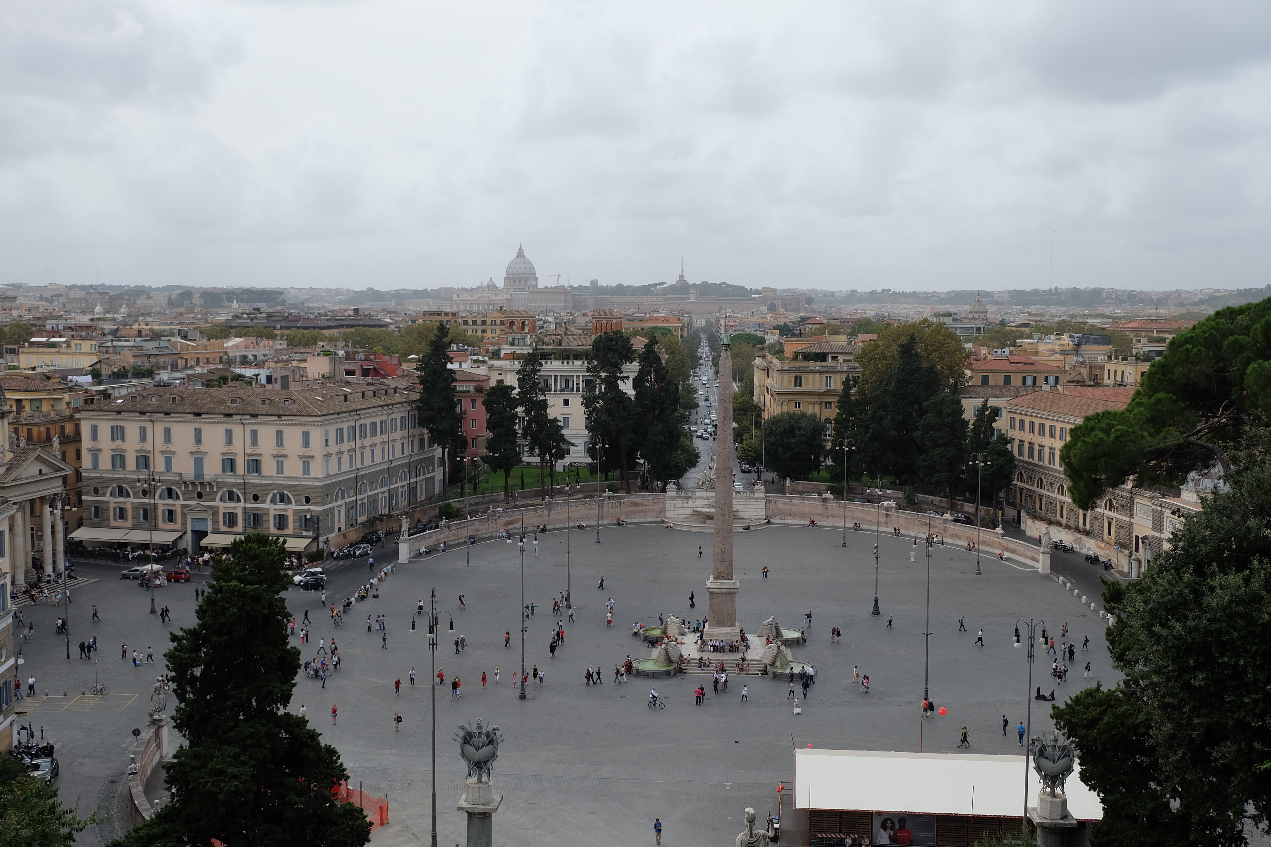 We left the park heading toward the Piazza del Popolo to take in some of the views that its elevated position affords. In case you forgot you were in Rome, the number of church domes dotting the city skyline remind you that you could only be in one place.