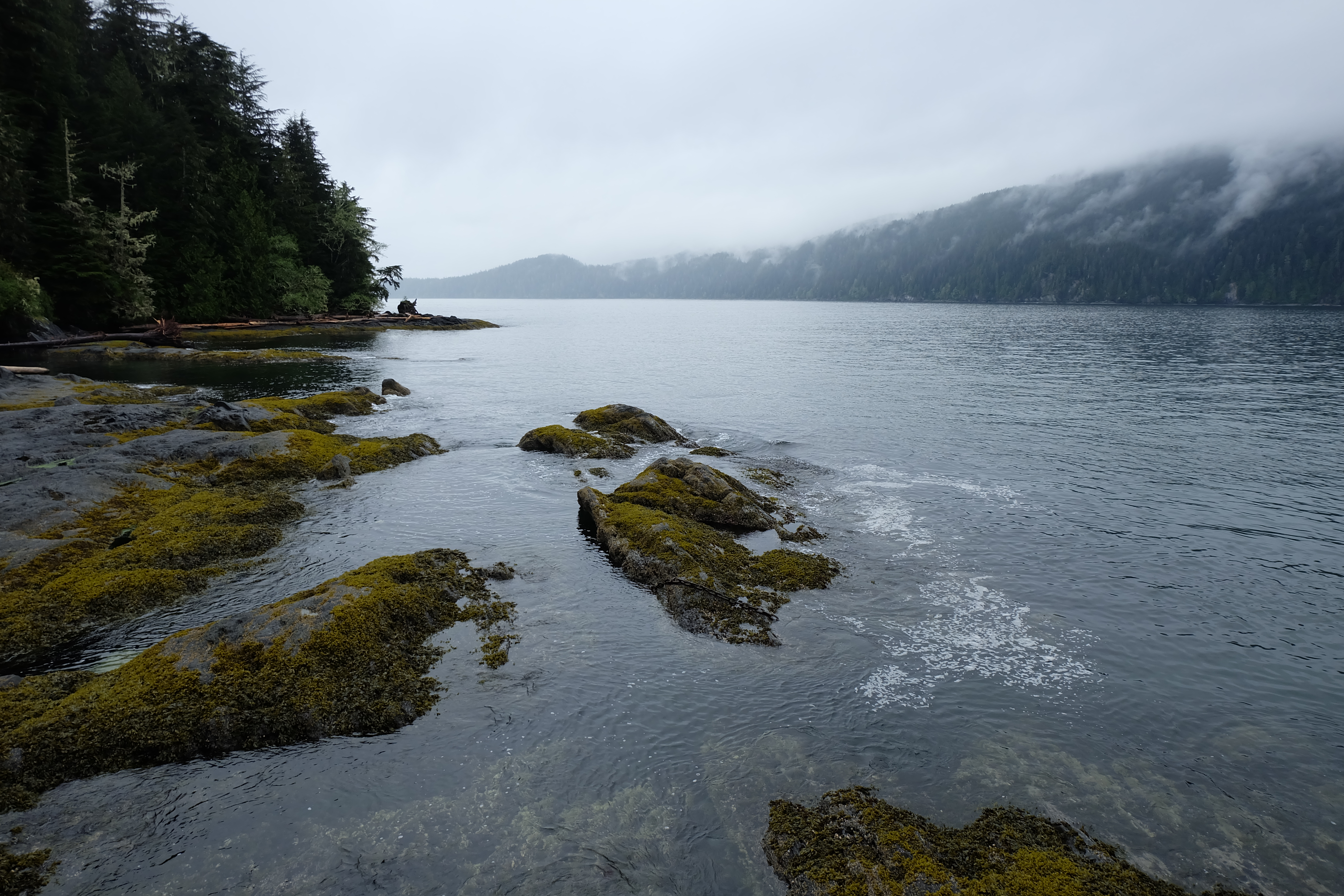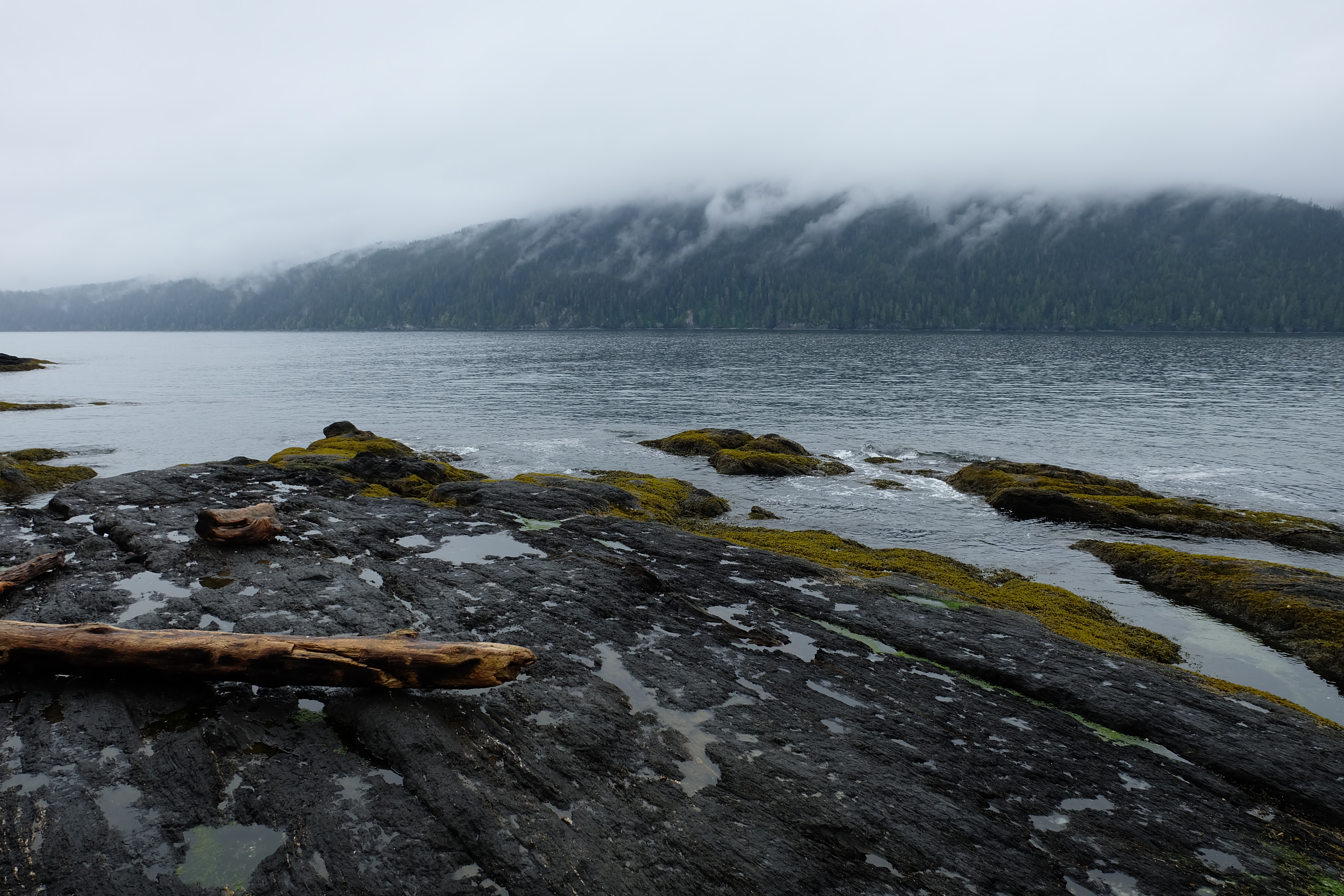 Under cloud, fog and drizzle, I had a wonderful atmospheric view out over Port San Juan. Perhaps it was my east cost winter starved eyes, maybe it was the romanticism I have for a foggy and overcast day, but I loved the lush green colours and lingered here a while under an umbrella drinking in the scene.