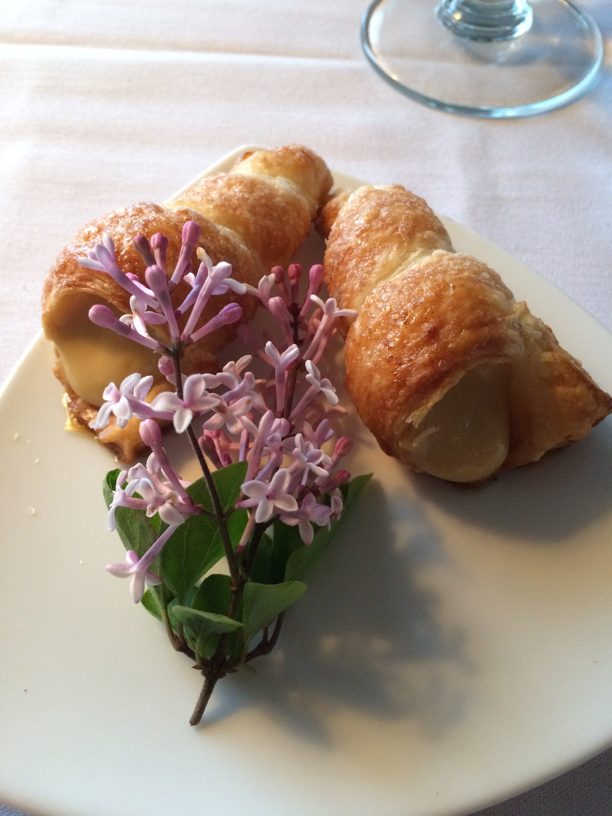 Served with the cheque were these mini custard filled pastries decorated with flowers from the garden. A perfectly flaky pastry with just a touch of salt wrapped around a vanilla cream, they made a wonderful last taste of a meal that could not have been more perfect. The food, wine, service, ambiance of the dining room and the natural setting through the window made this a perfect way to cap a day exploring Vancouver Island.