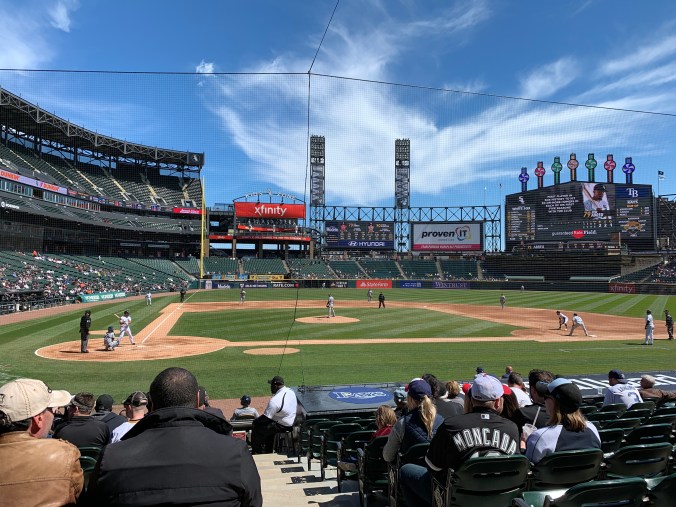 So, game one – on a spectacular April afternoon, here we are checking out the ballpark in advance of a White Sox game against the Tampa Bay Rays.