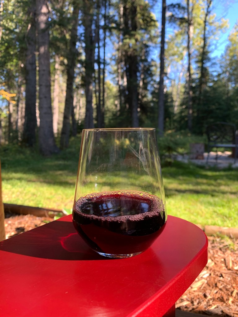 At some fairly respectable time in the morning (which I won’t disclose, but it’s noon somewhere, right?), I’d make my way to one of the Adirondack chairs in front of our cabin with a glass of wine or a beer along with a book in hand. A bit of reading, some sipping, and some staring off into the trees and sky to the sound of birds singing was how I passed the time on these days.