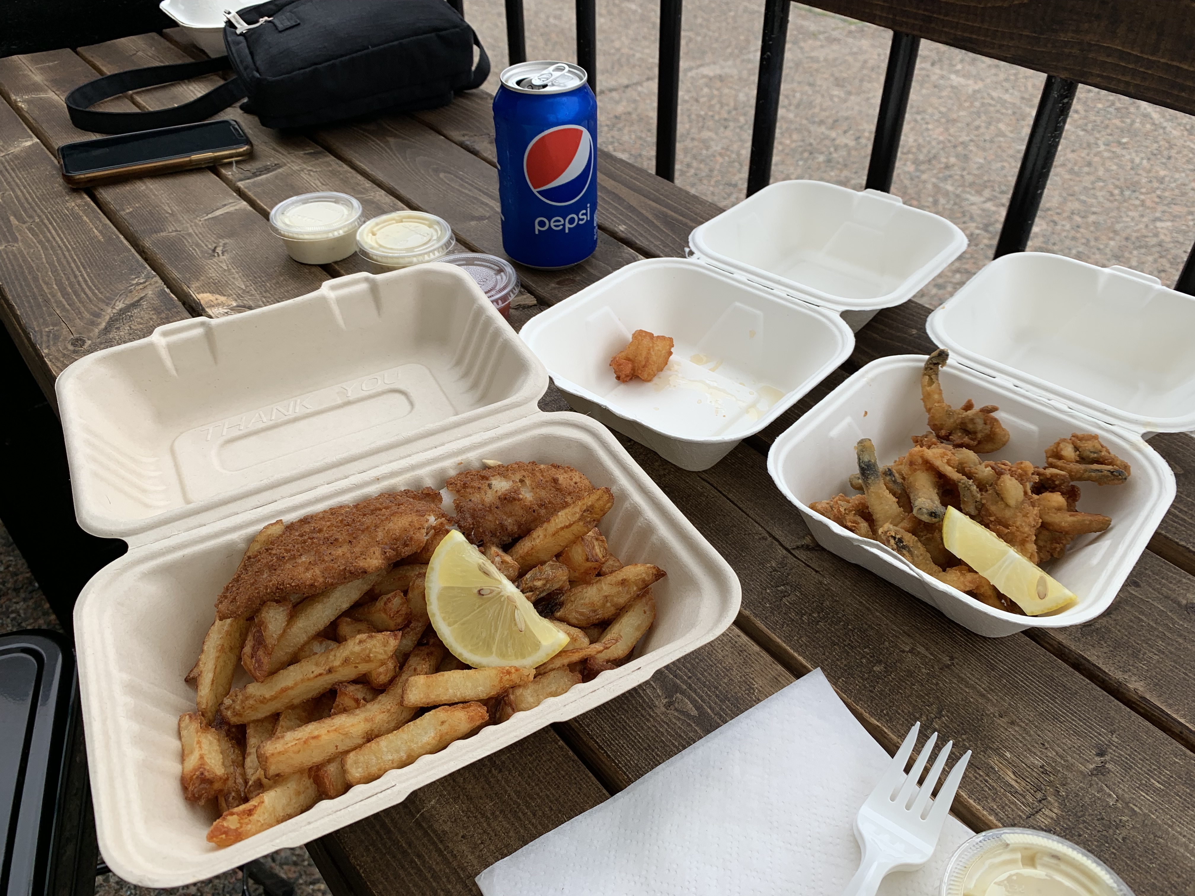 In our remaining time in the city, we squeezed in a few more favourites. For my celiac-suffering wife, a feed of gluten-free fish and chips and clams at Evans Seafood in the Dartmouth ferry terminal.