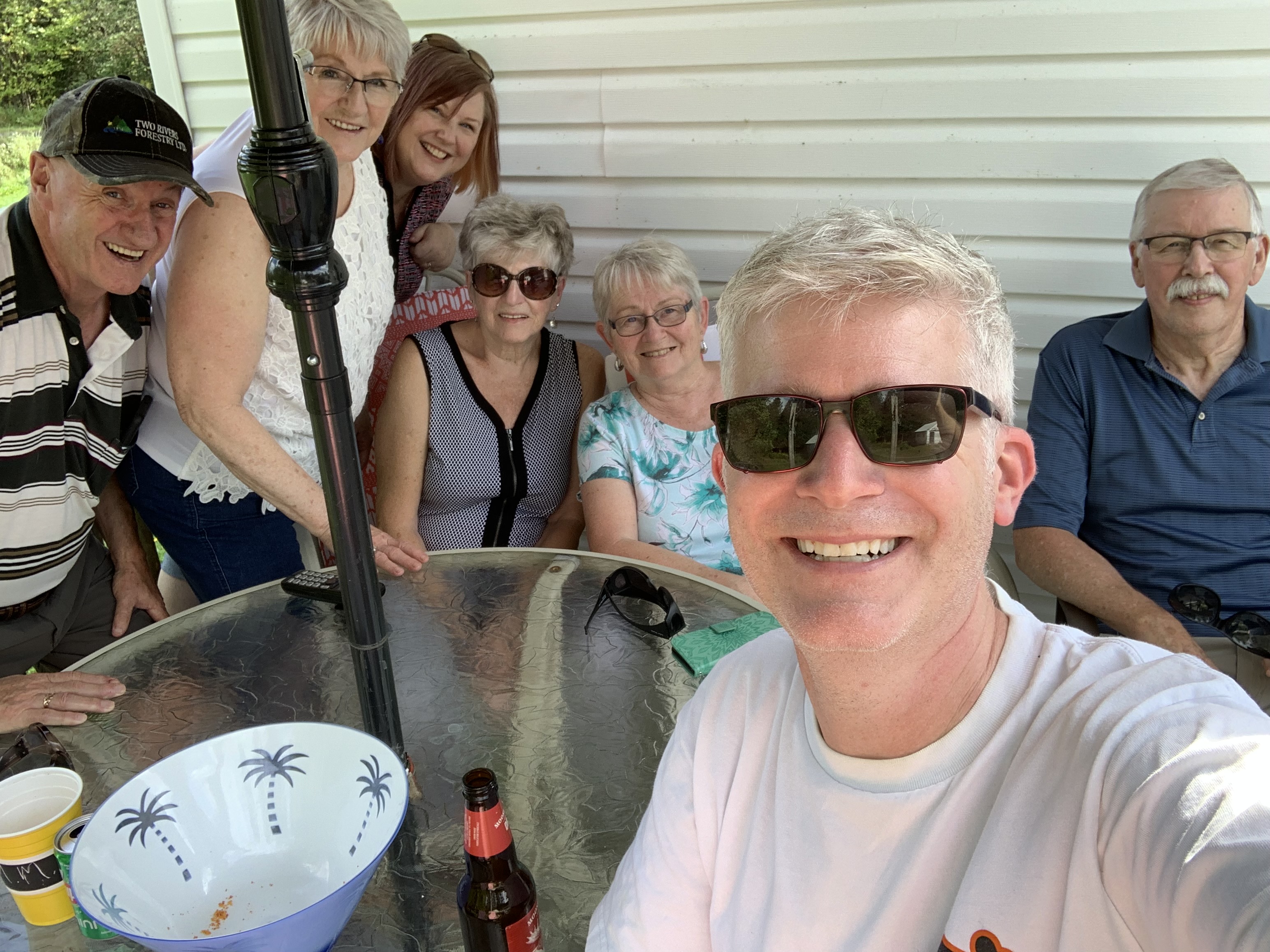 While all of that makes Nackawic a nice place to visit, it was hanging out with family we hadn’t seen in more than two years that made this part of the trip special. Another spectacular summer day meant a family visit and sharing stories could happen on a back deck in Canterbury. Many laughs were had as you can see by this picture of an uncle, two aunts, my wife and her mom and dad.