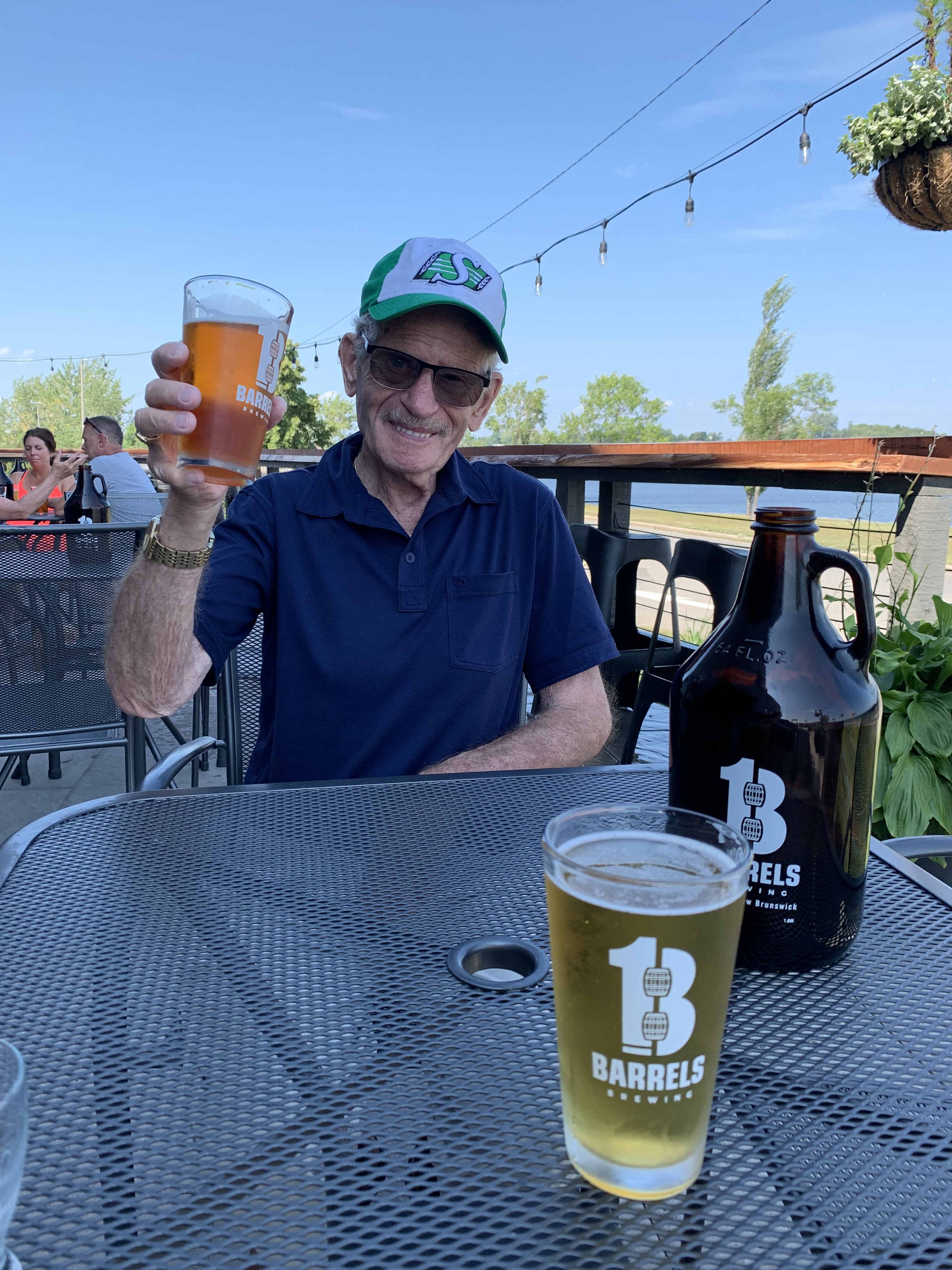 Almost four hours by car away in Bathurst, my parents’ hometown, I made a few visits to their two breweries. The weather allowed us maximum enjoyment of the spectacular 13 Barrels patio overlooking the harbour. My dad was digging their pale ale and wearing his Riders hat on account of it being a Riders game day.