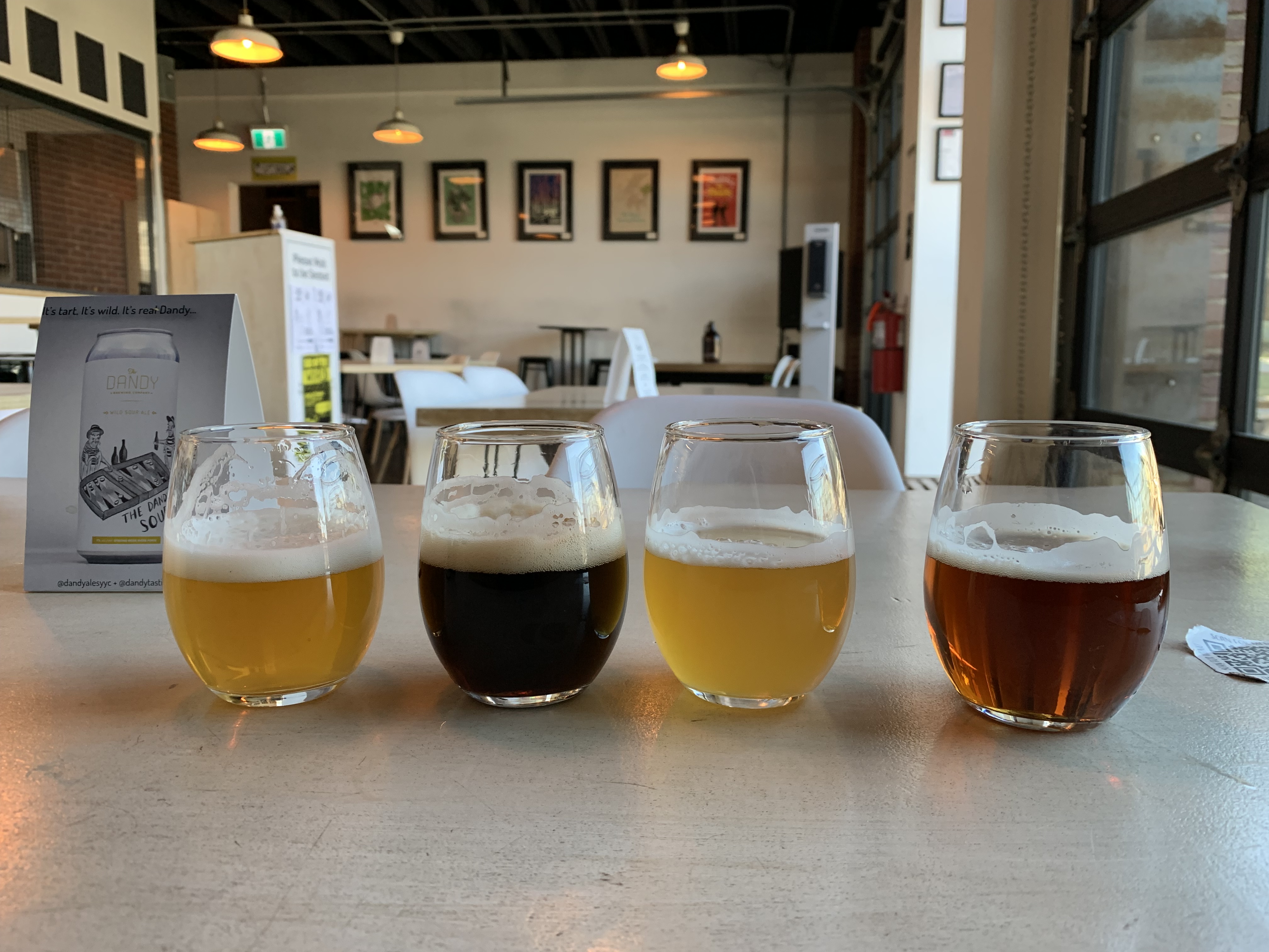 My next stop was at The Establishment Brewing Company. This ended up being my favourite tasting flight and included a couple of the best beers from the entire trip. In particular the two beers on the right (“Sky Rocket VI”, a 7.3% NEIPA and “Beauty in the Vibrant Form”, a sour) were mind blowing. A local Saskatoon beer group is always recommending this brewery to anyone visiting Calgary and they did not lead me astray.