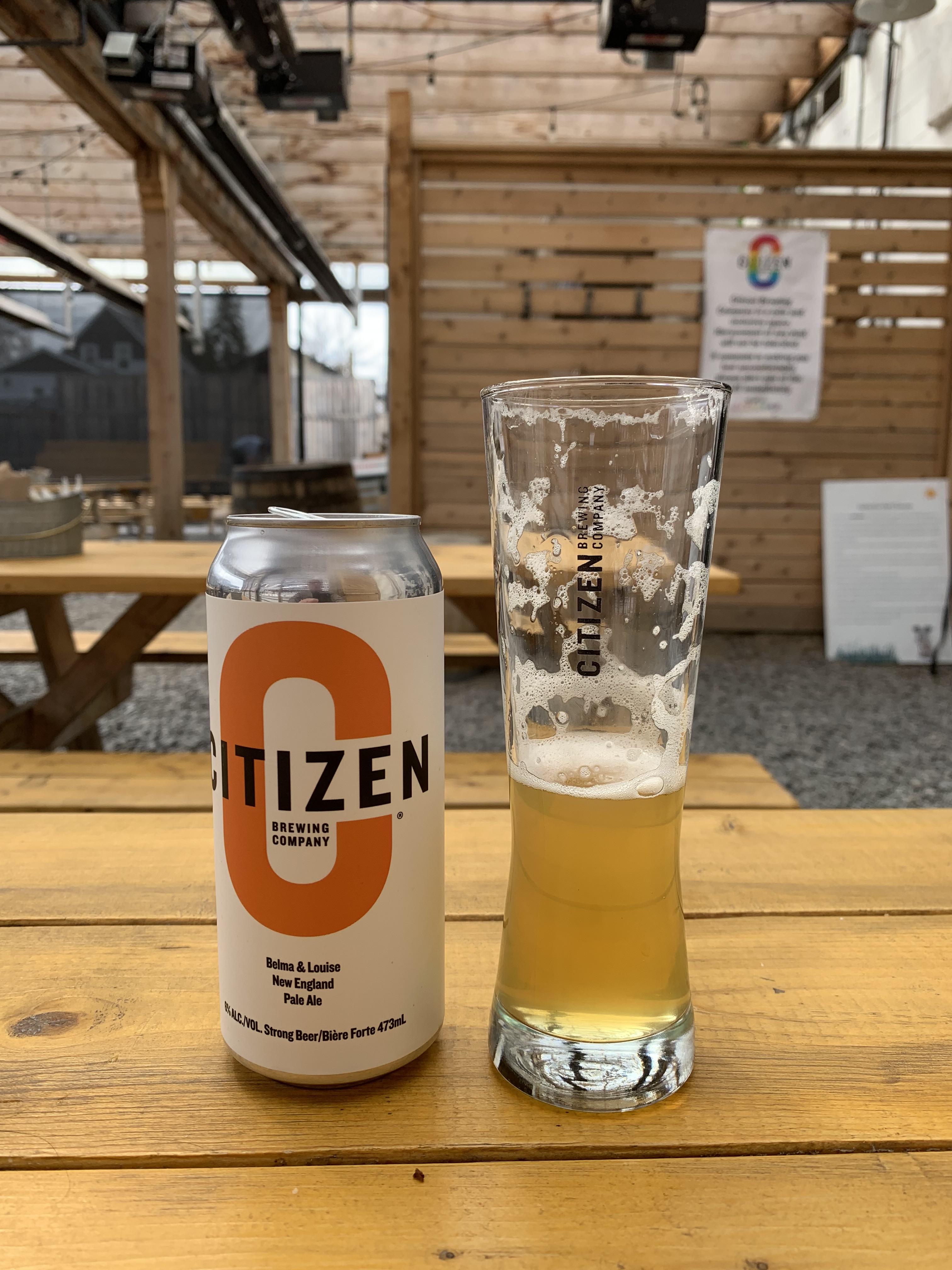 The last stop of my Calgary tasting tour was on my way to the airport for my flight home. I got to Citizen Brewing just as they opened and had a tasting flight with a couple of great beers – a sessional blonde ale on the left of the picture to the left below, and a pint of “Belma and Louise” a hazy pale ale in the picture on the right below.