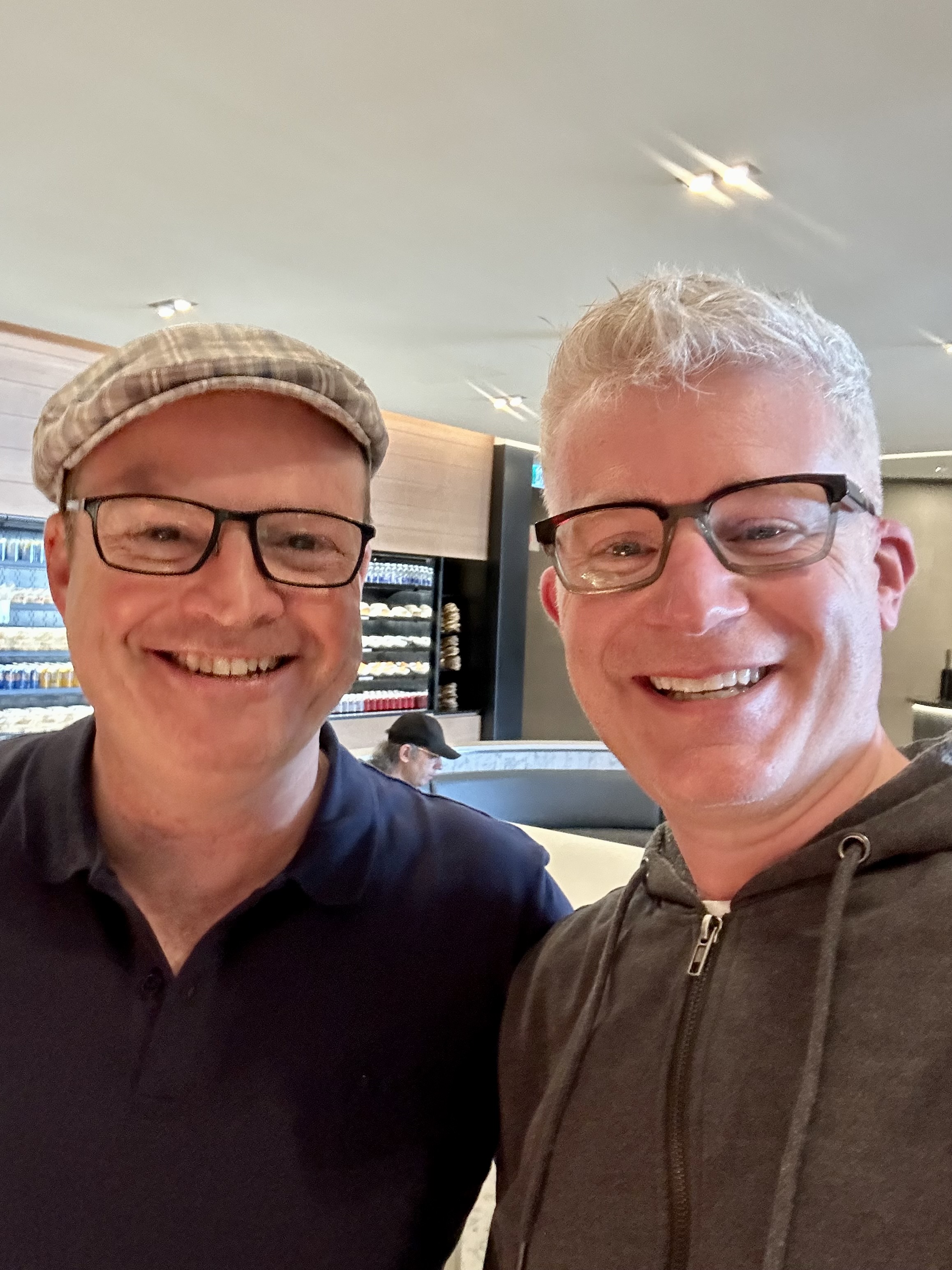 One of the unifying themes of my gratitude for travel this year is the serendipitous meetings with people you have. On my way to Quebec City while waiting in the lounge at Pearson in Toronto, I got to chat briefly with one of my favourite comedians, Steve Patterson. Back in 2019, a friend bought us tickets for one of his comedy shows in Saskatoon….. in the front row. Steve picked me out during his routine and made fun of me off and on through the evening calling me a “silver fox” and remarking on my hair multiple times (he also said I was strikingly handsome, but who’s keeping track?). Getting to meet him in the airport and sharing this story with him was fun, and he was gracious and laughed at his own jokes at my expense.