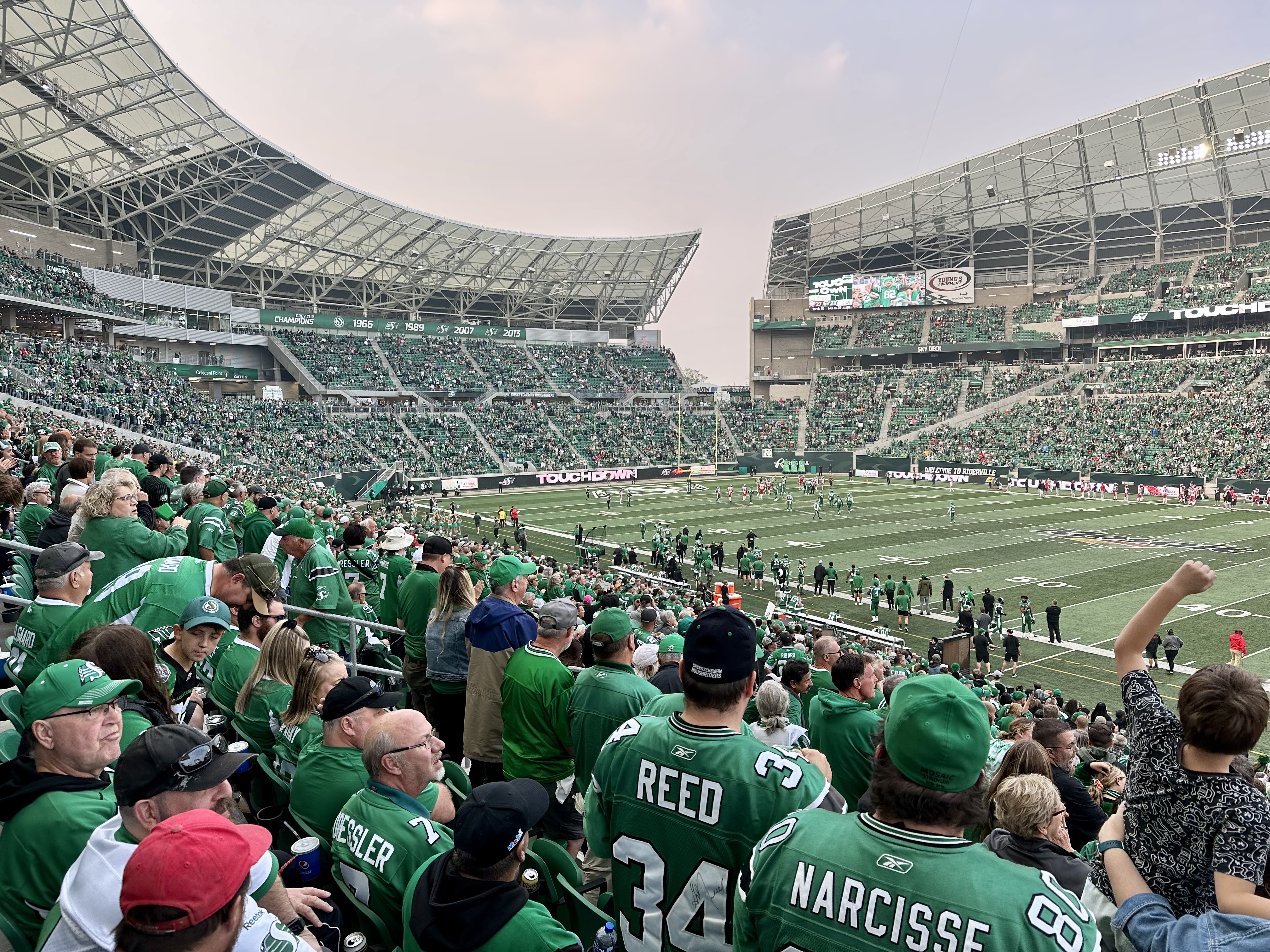 The summer Riders game in Regina is a yearly tradition for us. It is also an unfortunate tradition that they never win the game we attend which held up for another year. But this year, there was a remarkable comeback, an amazing deep Hail Mary throw that gave the Riders the late lead to the astonishment of all of us in attendance. And then, like clockwork, they broke our hearts by allowing a last second game winning field goal to Calgary. It’s been a long time since I lost my voice at a sporting match or had as much fun.