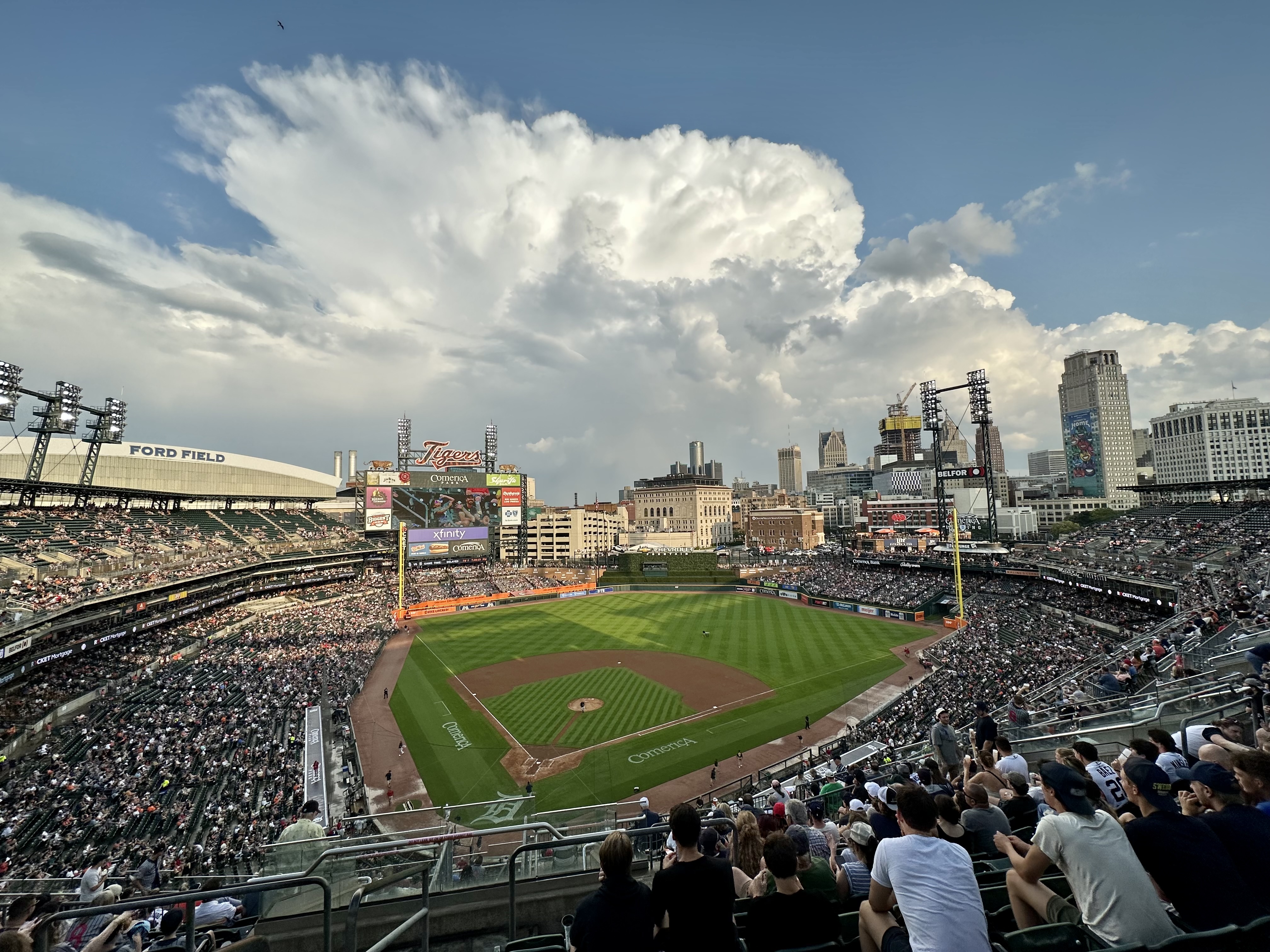The next night back at the Comerica Park and I chose a cheaper upper deck seat. It gave me this awe inspiring view of a violent storm that delayed the game by about an hour. While the game on the field this night was a blowout, I got to watch that storm slowly float over the Detroit River and past Windsor for the entirety of the ballgame.