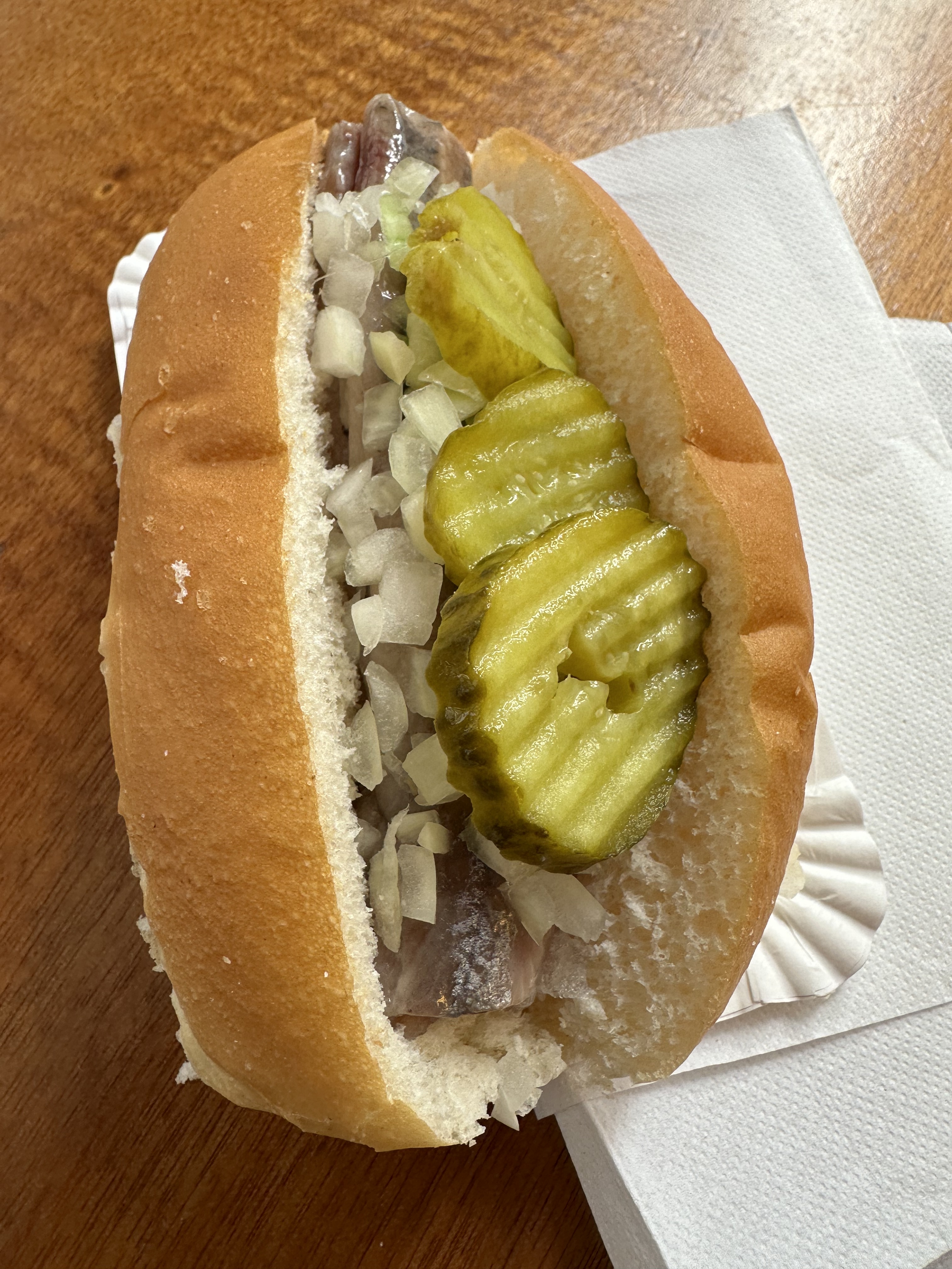 I had reached the age of 49 without ever having tried a freshly made stroopwaffel. I made up for lost time and loved gobbling one up about ten seconds after it was made in front of my eyes. Then, around the corner, I made a beeline for a seafood shop for a herring sandwich. I felt pretty Dutch with my two lunch selections. Maybe I ordered them in the wrong sequence, but it worked for me.