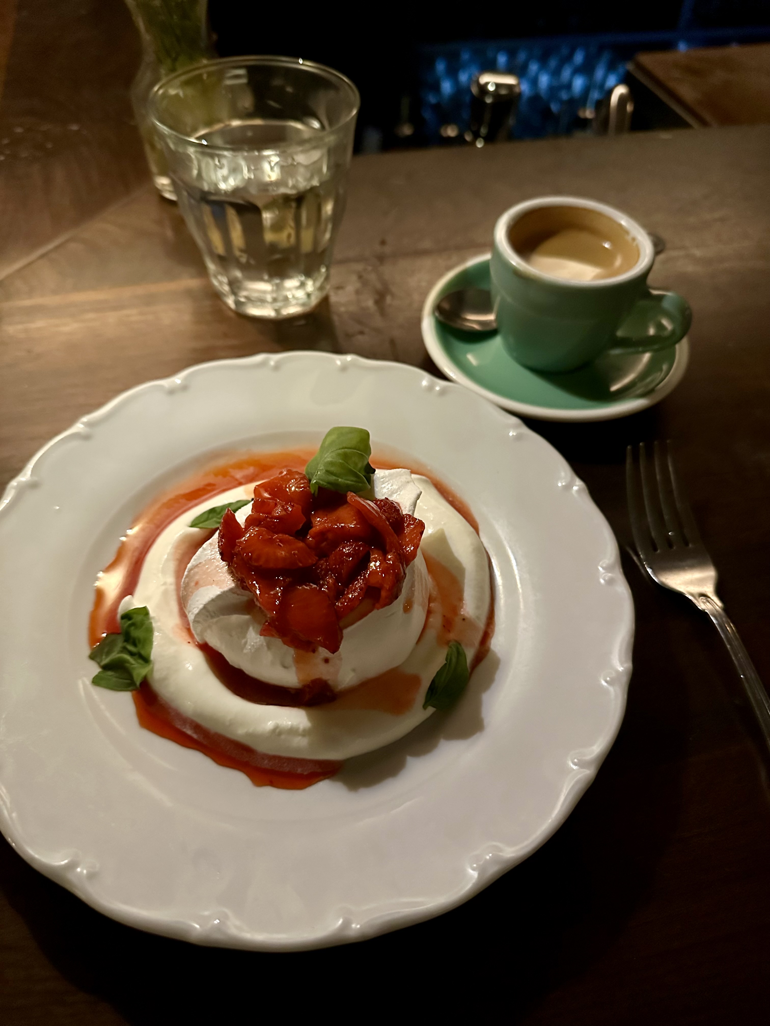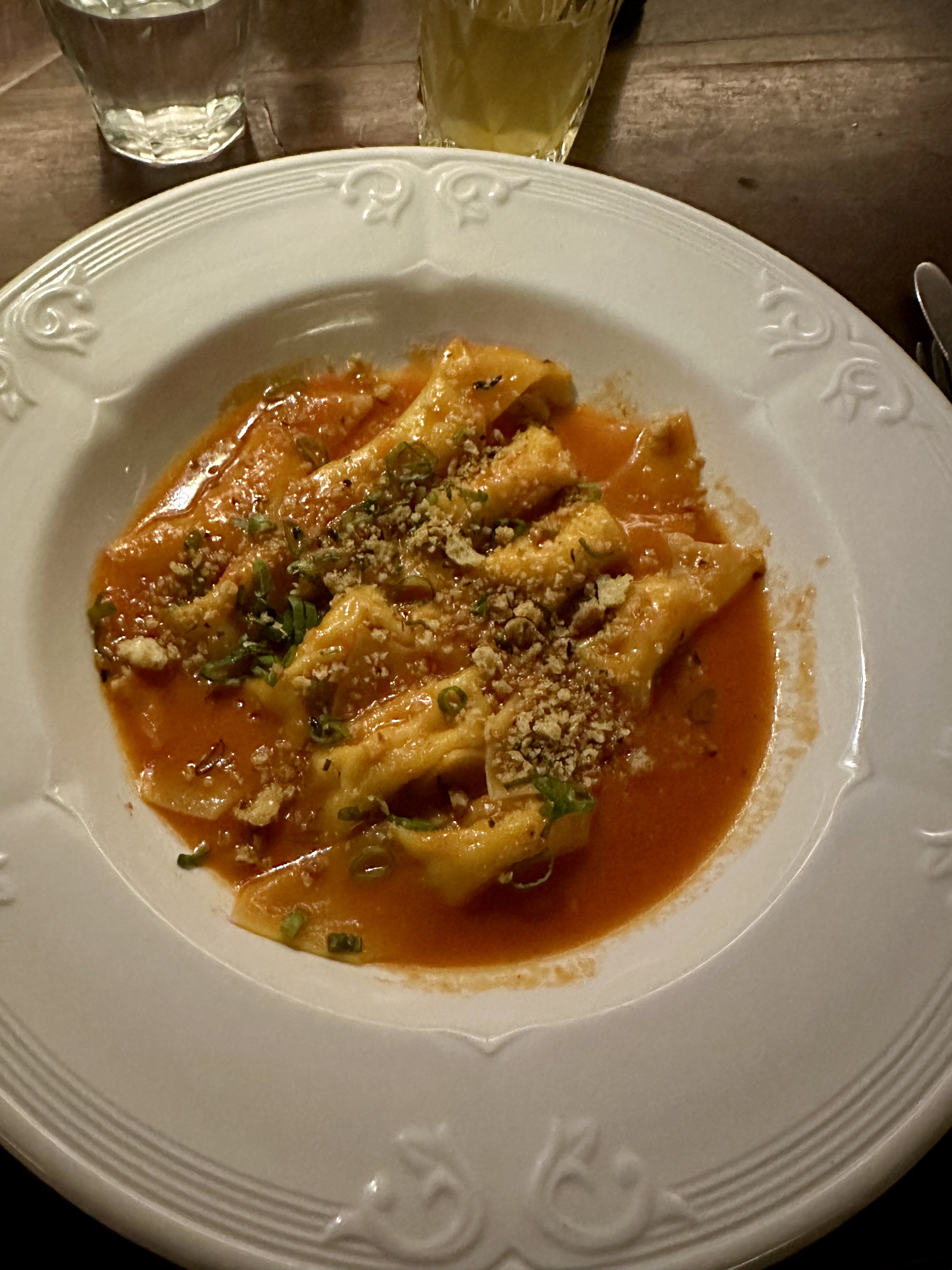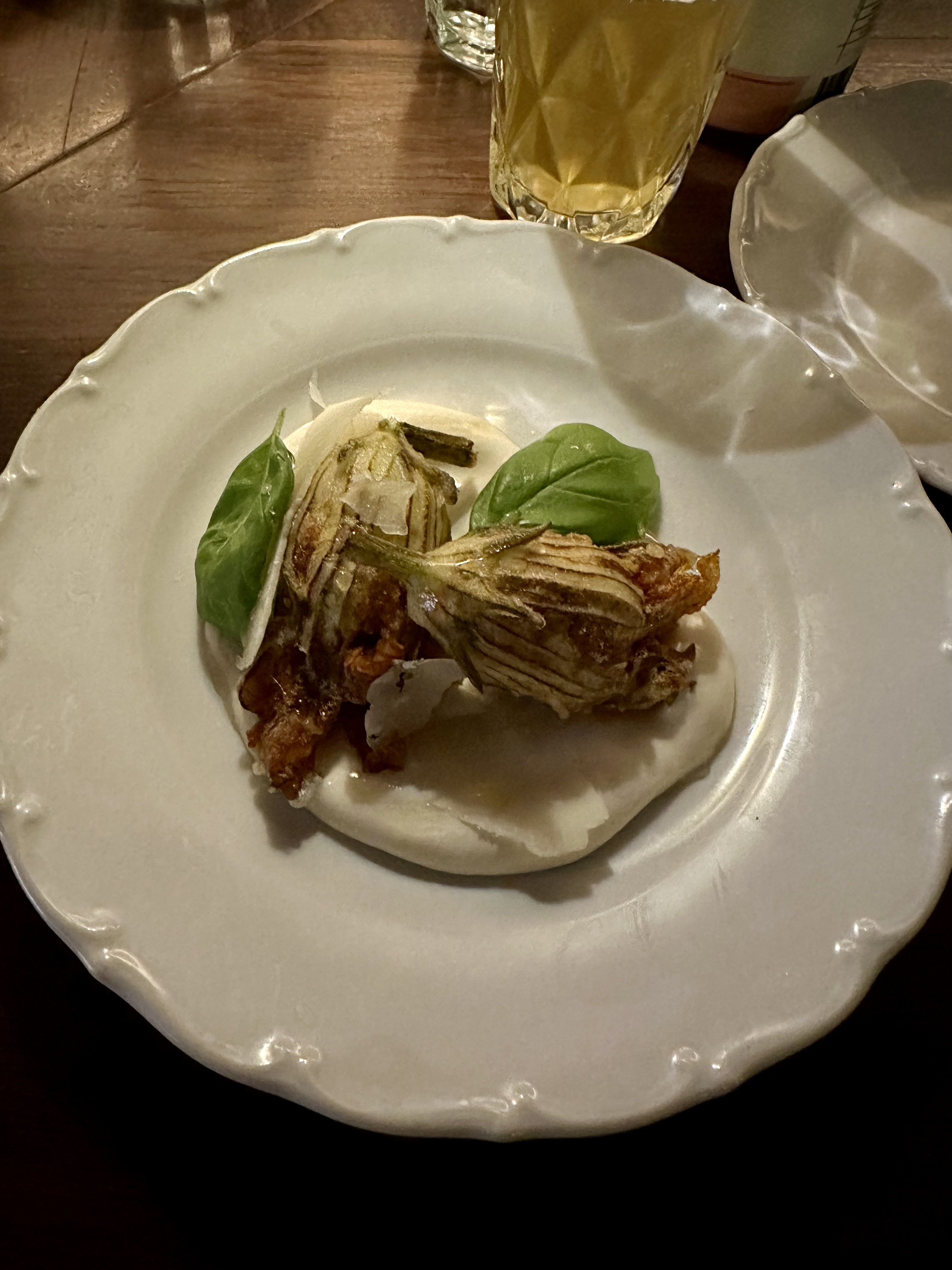 On this trip I opted for a new to me restaurant for a great meal and settled on Nora Grey. Sitting at the bar, I was part of a bit of banter among a few couples, one of which was celebrating an anniversary and buying drinks for everyone else. Everything I had was delicious and I expect I’ll return on a future visit. Fried zucchini flowers stuffed with rabbit sausage, casoncelli with lobster and garlic scapes and a strawberry and lemon/basil pavlova made for an amazing meal.
