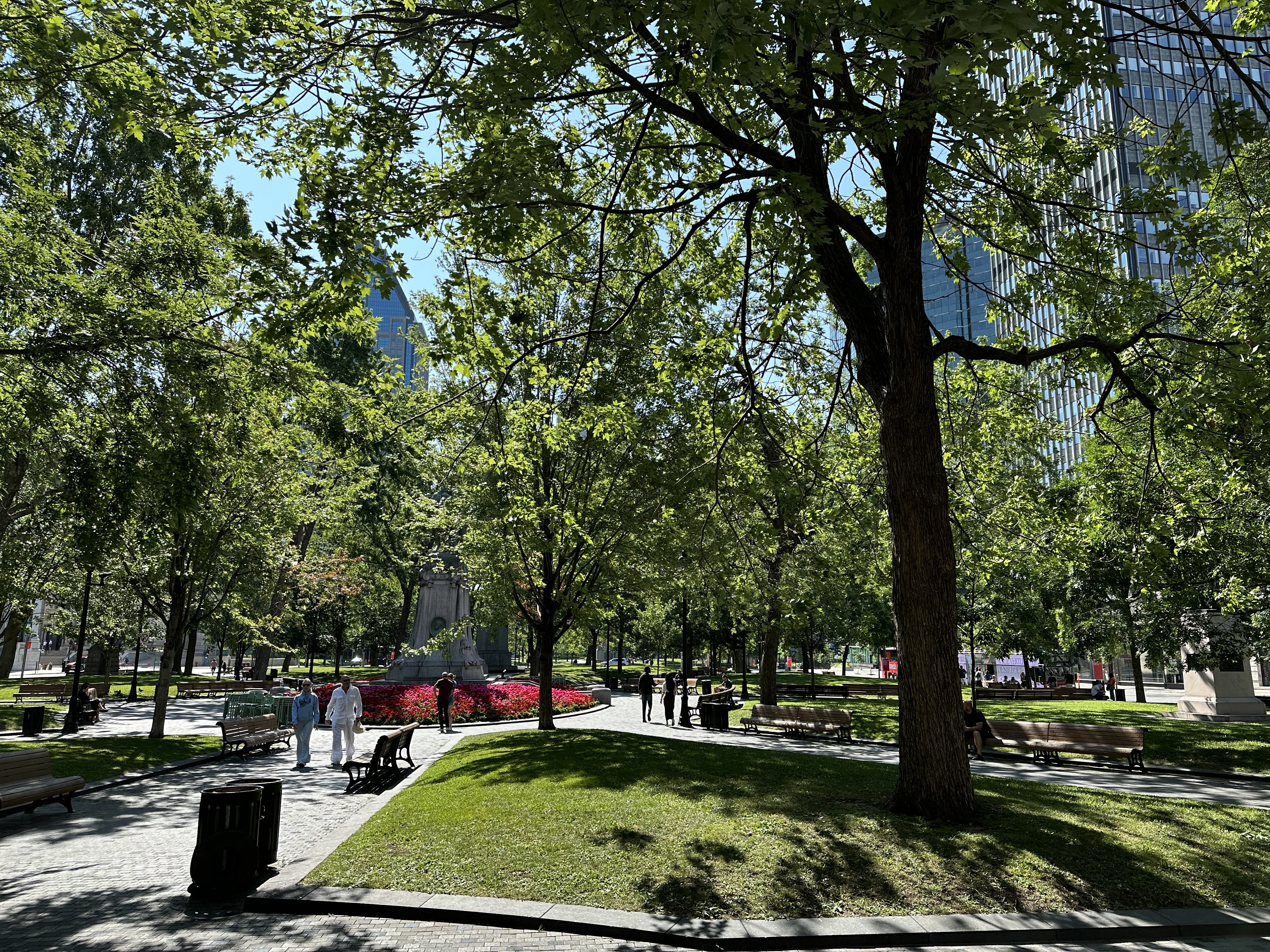 On what would have been my dad’s 85th birthday, I saved the afternoon to simply wander around the city and there were so many memories on so many street corners. I sat on a couple of patios with a beer in my hand and thought of him. I walked down rue Ste. Catherine and remembered how in awe I was of the sounds and sights of this city as dad held my hand as a 7 year old. Maybe no place made me smile more than cutting through Dorchester Square where I chased pigeons on those early 1980s trips with dad.
