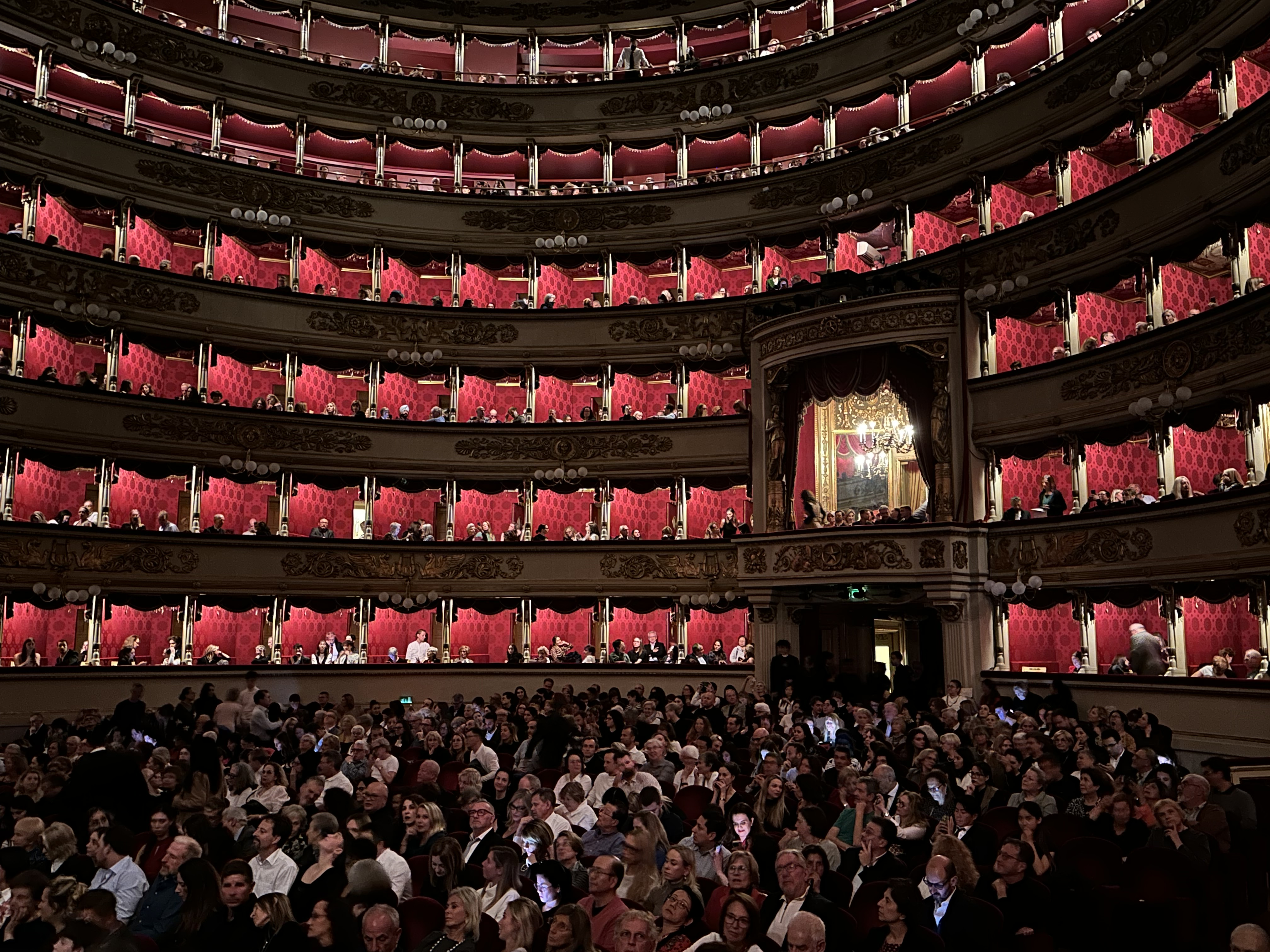 My dad was an opera fan and spoke often of wishing he could have visited La Scala. That was on my mind as I watched the hall fill up as curtain time for the ballet approached. There were moments sitting here before the show that I was simply enthralled by the setting and the gathering crowd.