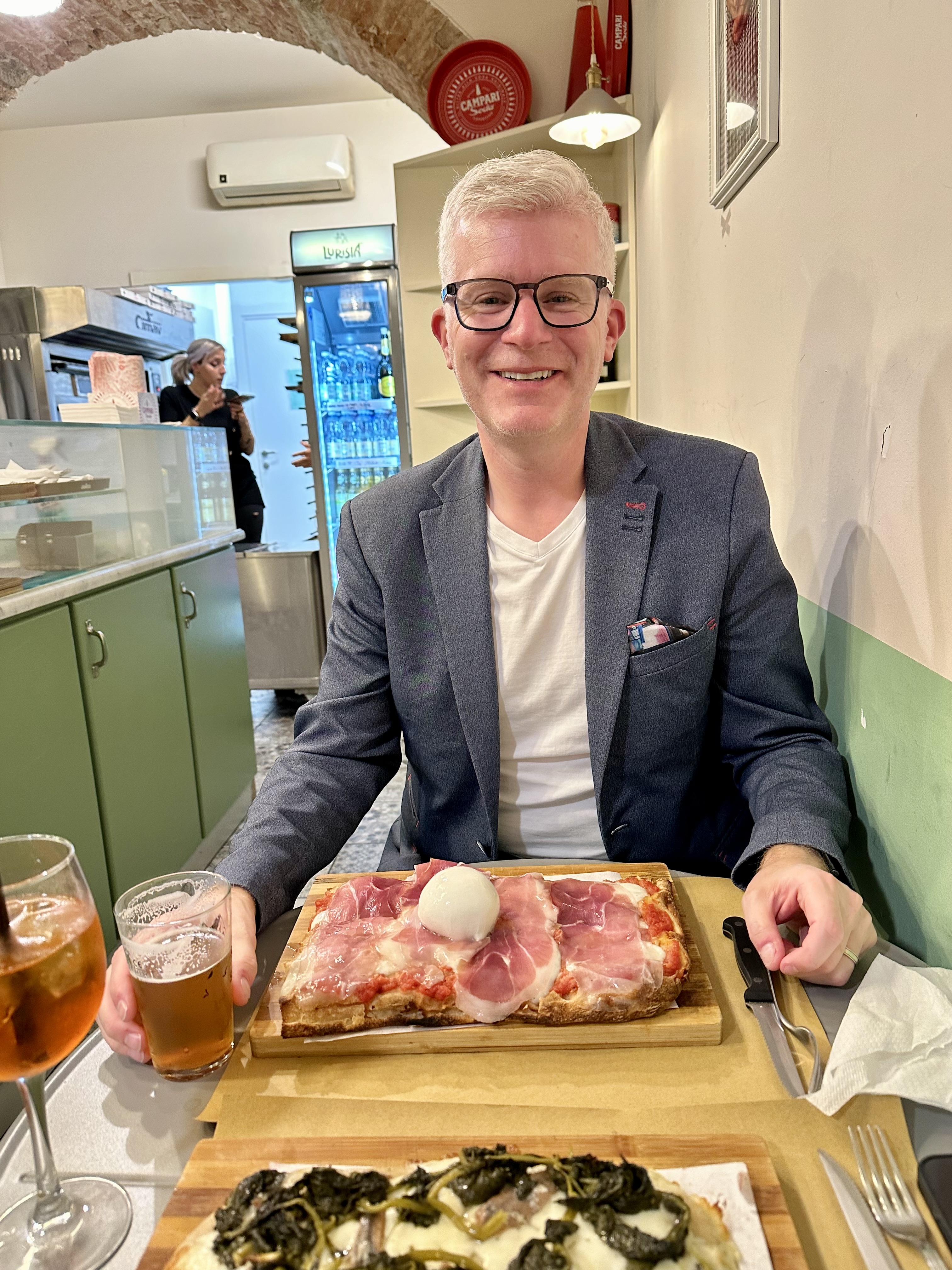 After a nap and a glass of wine on our patio, our dinner the last evening in Turin was at Nonna Cleme on account of their highly reviewed gluten free pizzas. We enjoyed a lovely meal in a tiny restaurant to cap off our abbreviated three days in Turin on a delicious note.