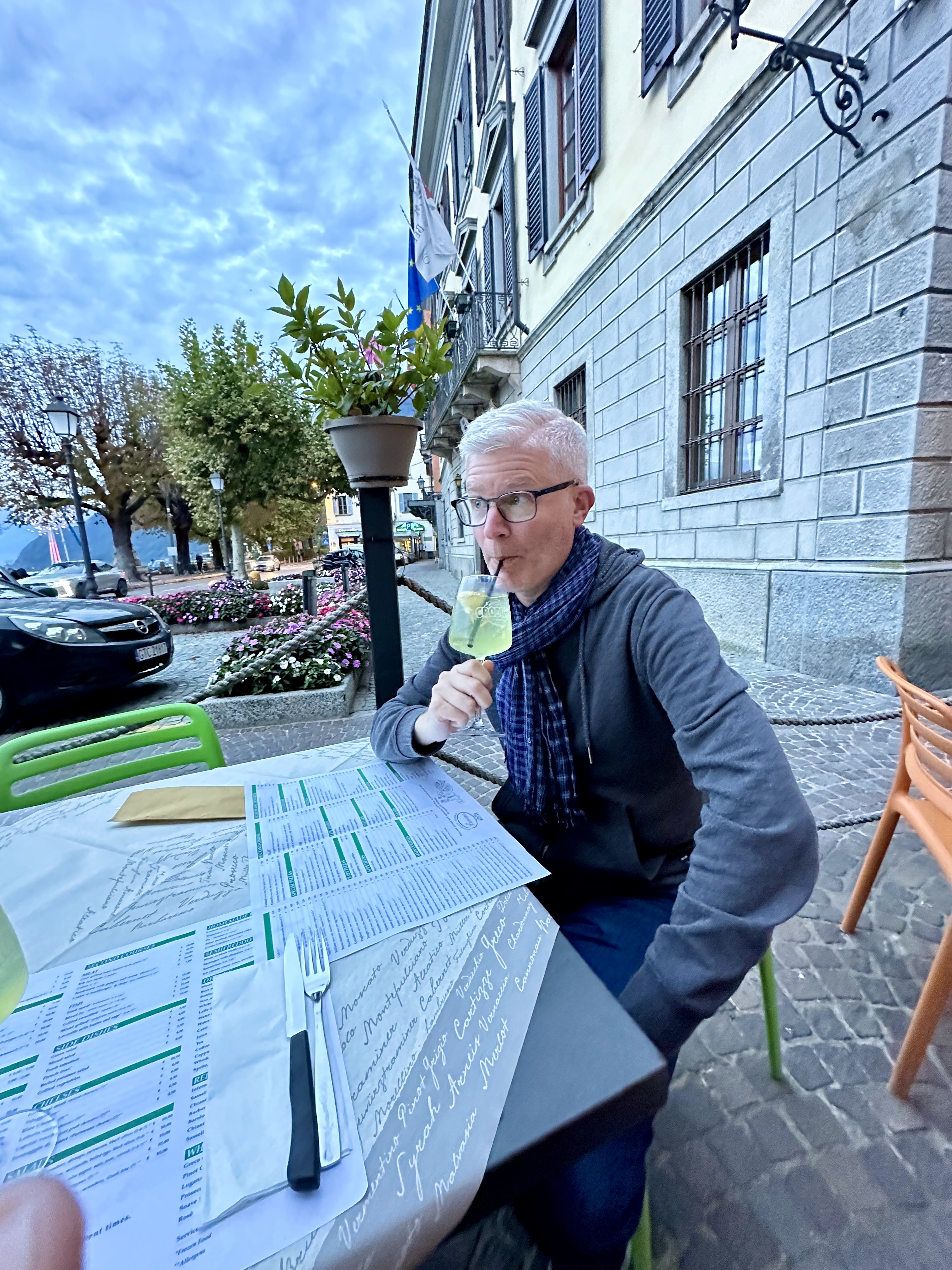 After our train from Turin via Milan was delayed for a couple of hours, we were ravenous and started our time with drinks and dinner. It was a cool evening, but nothing that would keep a couple of people from Saskatoon from patio time in such beautiful surroundings. This was this exact evening of the trip where after careful study I decided that the limoncello spritz was so much more to my tastes than the Aperol spritz.