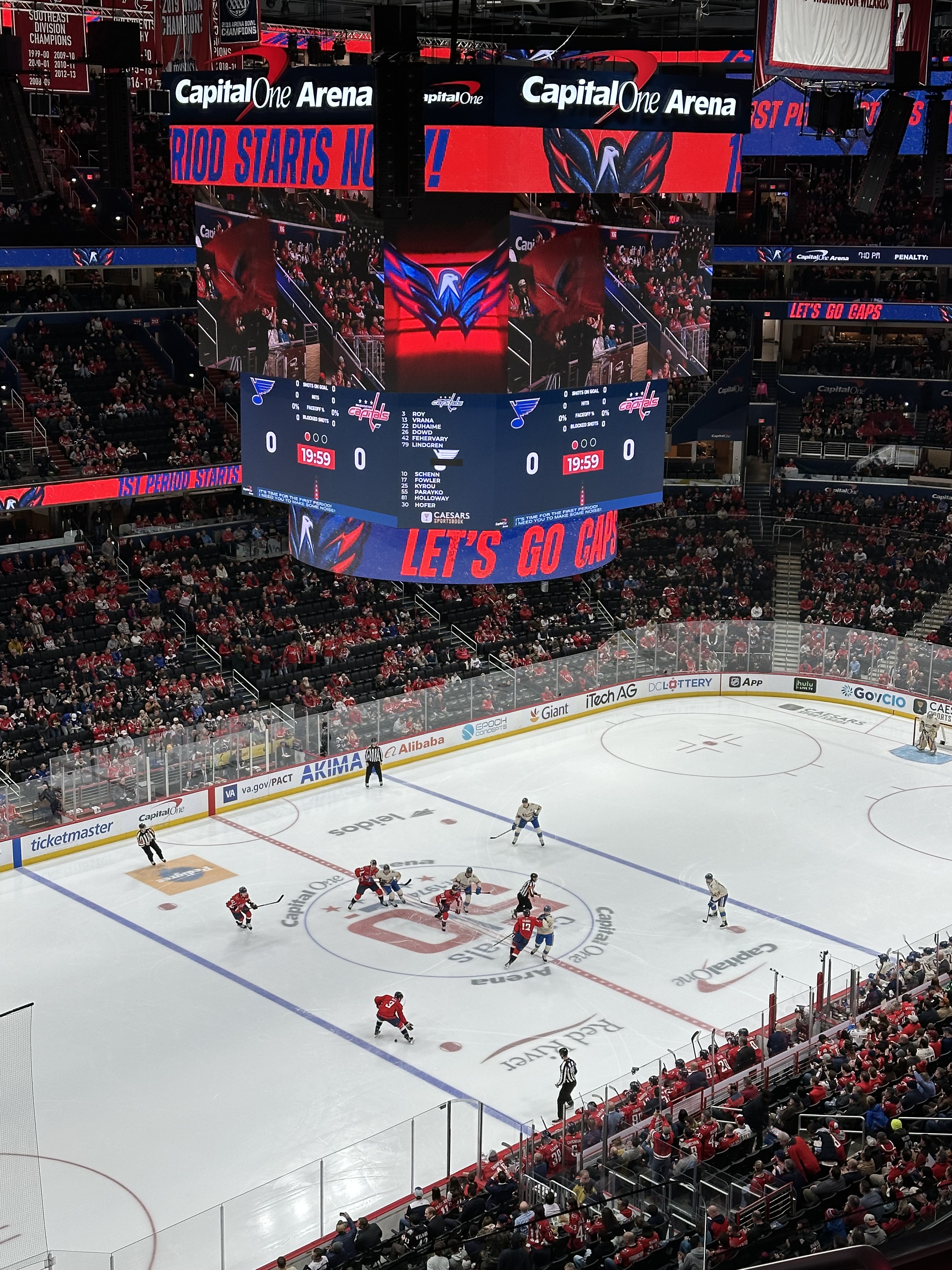 This was my view for the game – the cheapest nosebleed ticket I could find. Still a pretty good vantage point for this game between the Caps and the Blues. It was entertaining end-to-end hockey with the Blues winning 5-2.