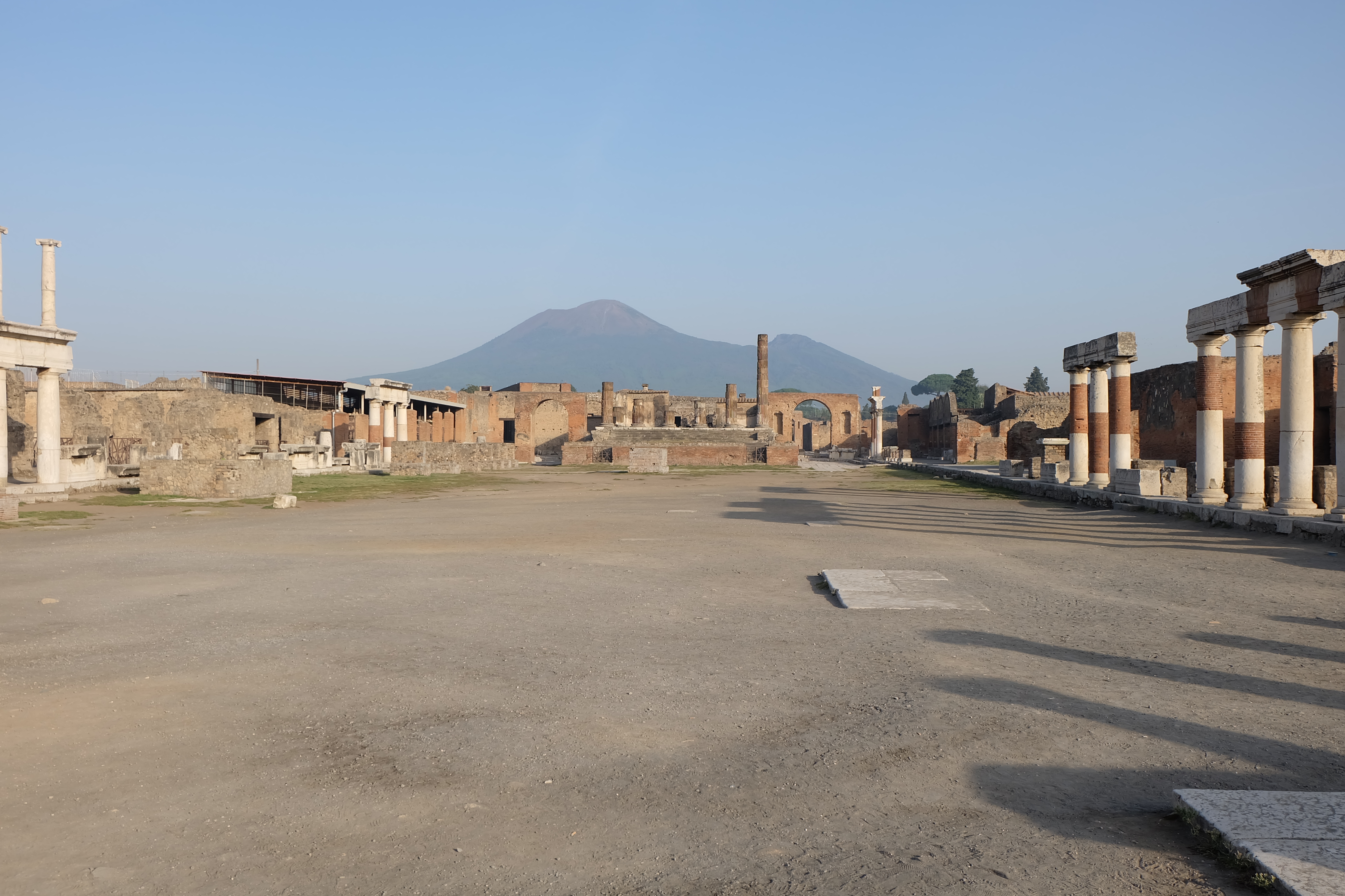 Traveling in the fall has many perks, among which is the ability to see some incredible sights without the crowds. Fresh from a great first night’s sleep in Sorrento, we took an early thirty minute Circumvesuviana train ride to Pompeii arriving there just as the ruins opened for the day. With literally no one else around we stood looking out across the forum with Mount Vesuvius looming about 8km away in the background. Standing here, it was hard not to imagine the power of the eruption of the volcano that buried Pompeii.
