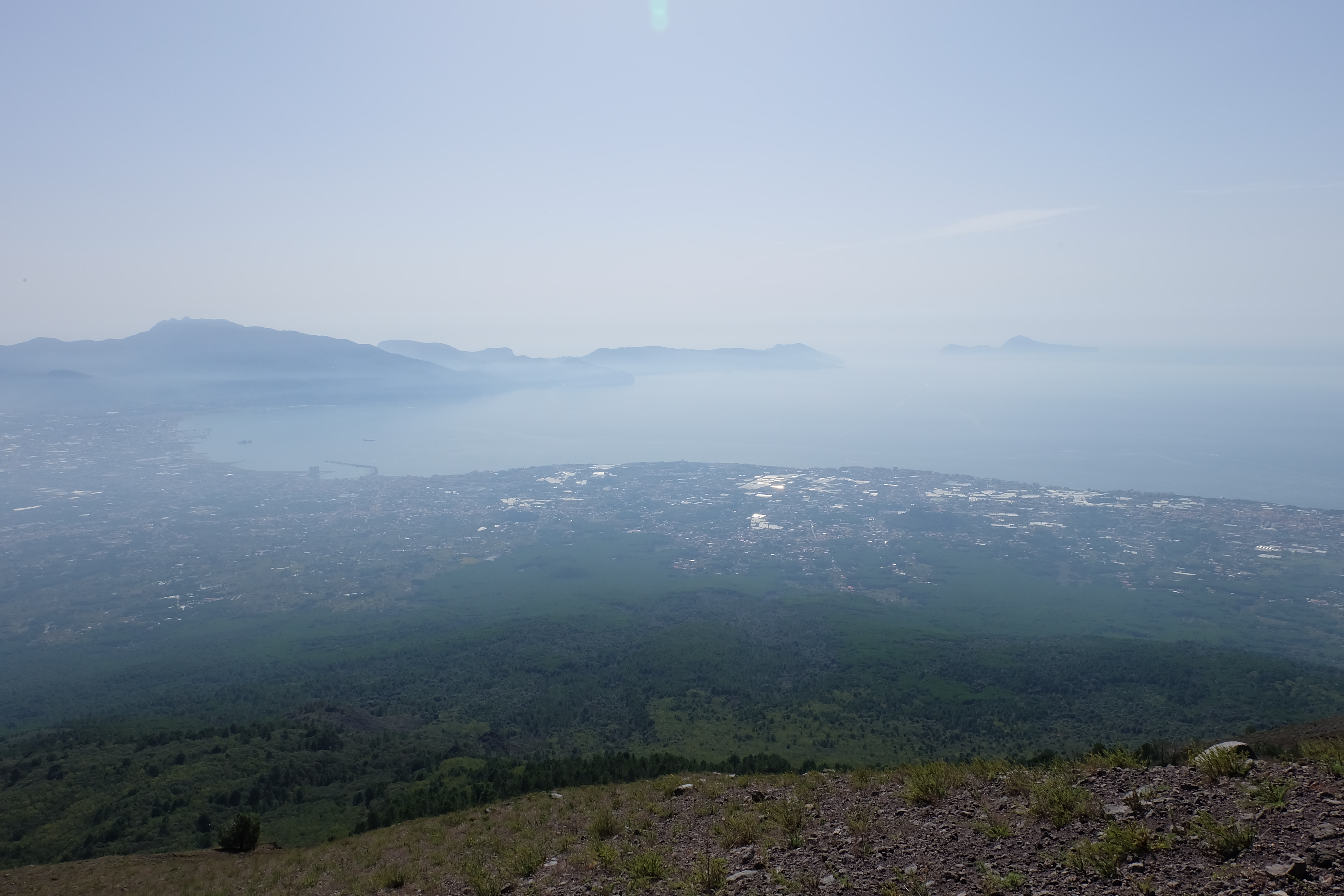 Once freed from our spartan chariot, we started our climb the rest of the way up Mount Vesuvius toward its peak. It is a fairly leisurely walk to the summit, throughout which you’re afforded million dollar views out over the Bay of Naples and the towns that line the water. As we neared the top we stopped for a few minutes to look out over the water toward Sorrento and Capri: