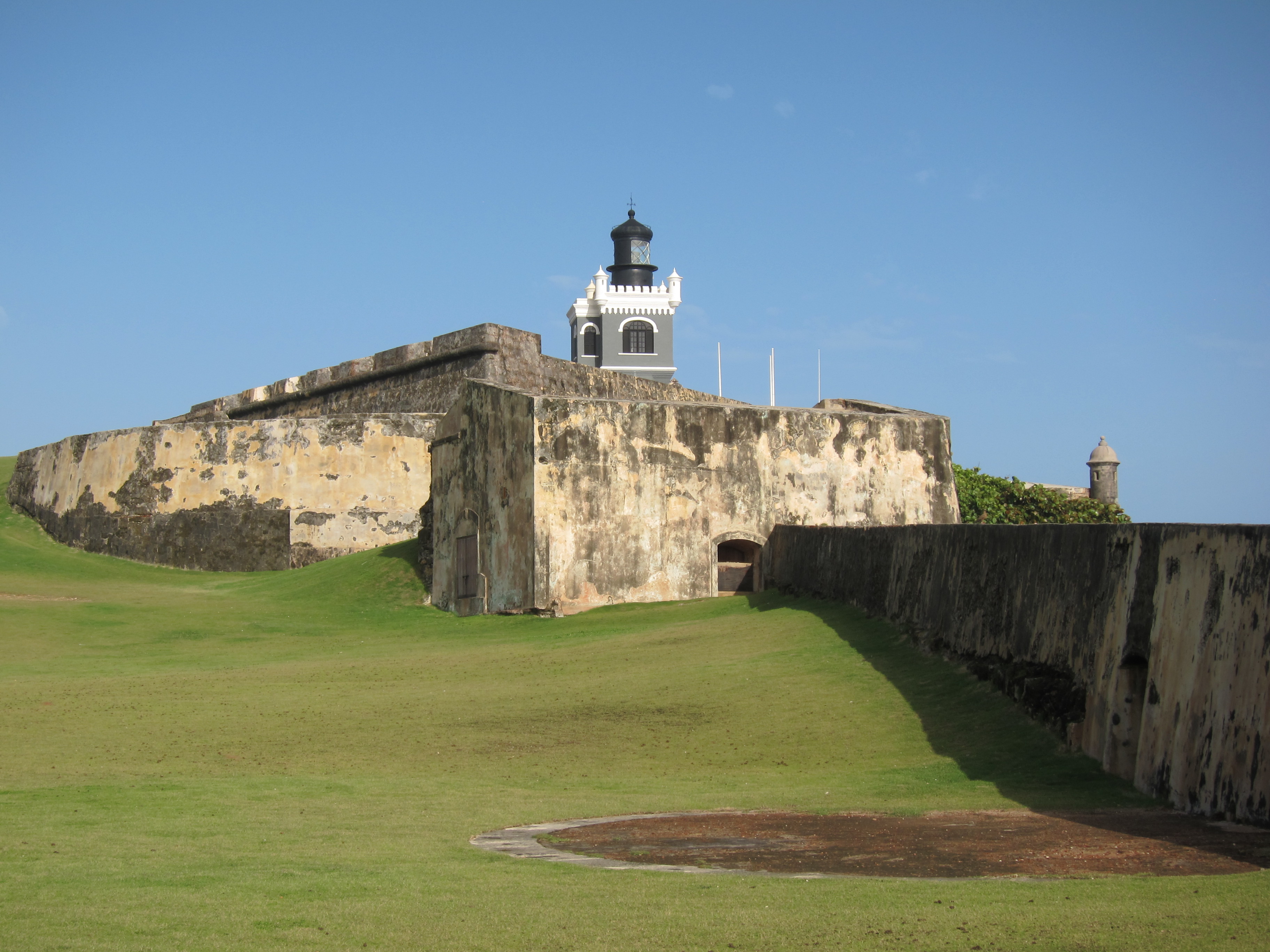 Early one morning of our stay, I headed out toward Castillo San Felipe del Morro for some fresh air and to see the fortification without the hordes of other tourists. This fort was built in the late 1500s to guard San Juan Bay. It was a perfect morning for exploring this area – not a cloud in the sky and the heat of the day ahead hadn’t yet arrived. One of the first striking features is the lighthouse, a recent addition to the fort in the early 1900s